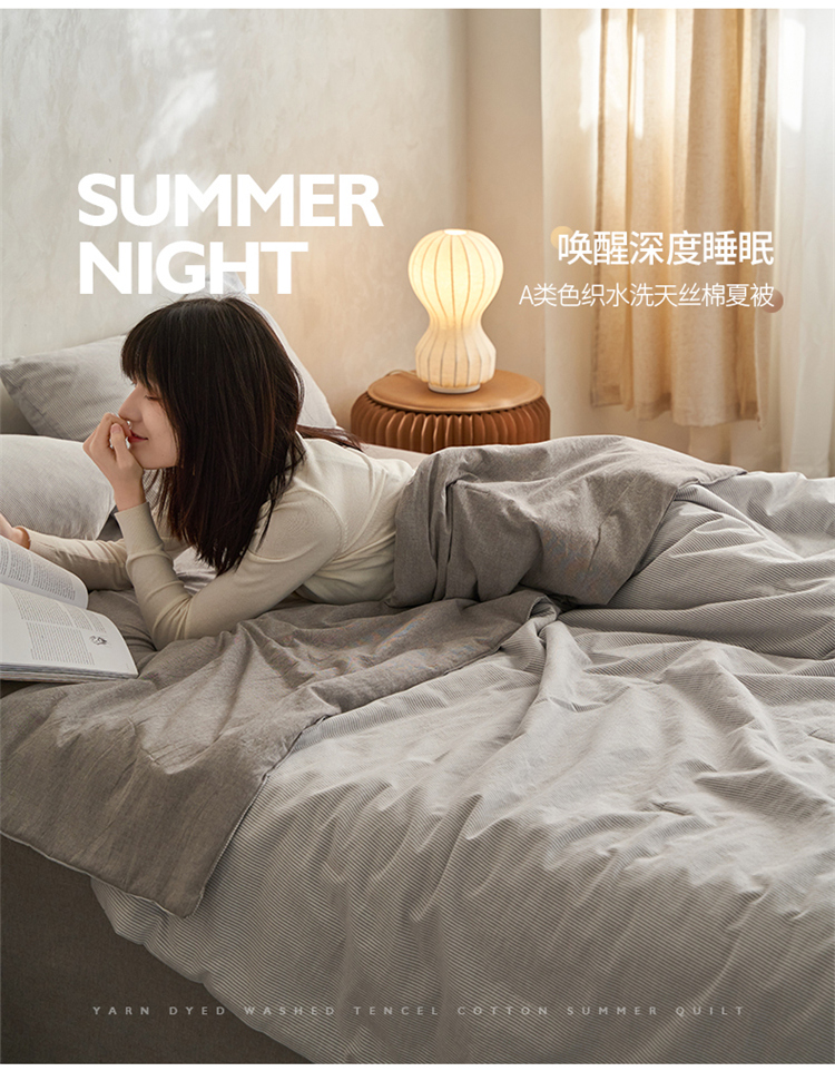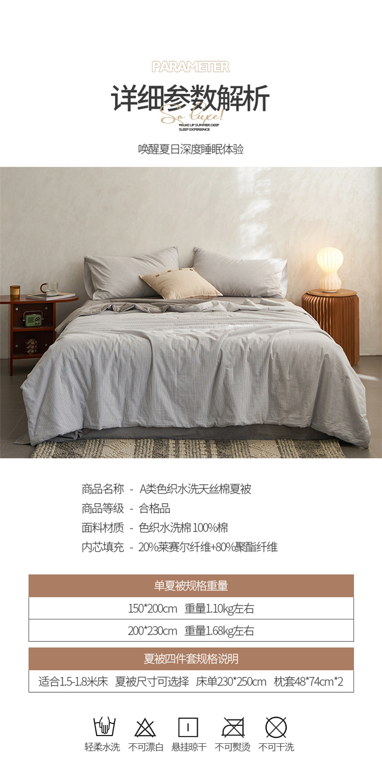 当前位置: 91家纺网 > 商品网购 > 床品套件 > 四件套 > 夏被四件套 > 总 莱宁被业 2023新款无印直播风a类全棉色织水洗天丝棉夏被四件套