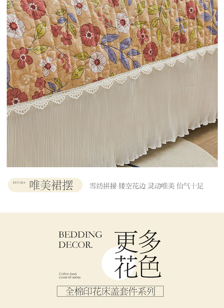 (总)宜凡家纺 2025新款全棉数码印花床裙三件套系列一,静若幽兰,浮云织梦,梦幻花园,陌上花开