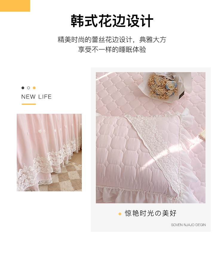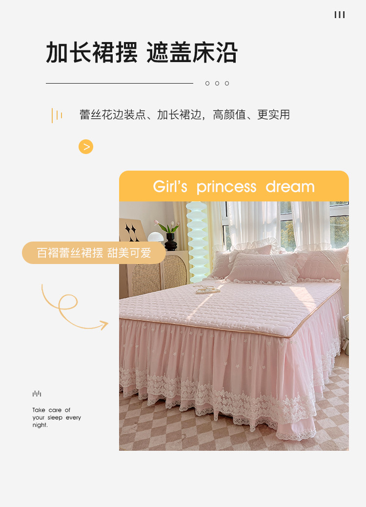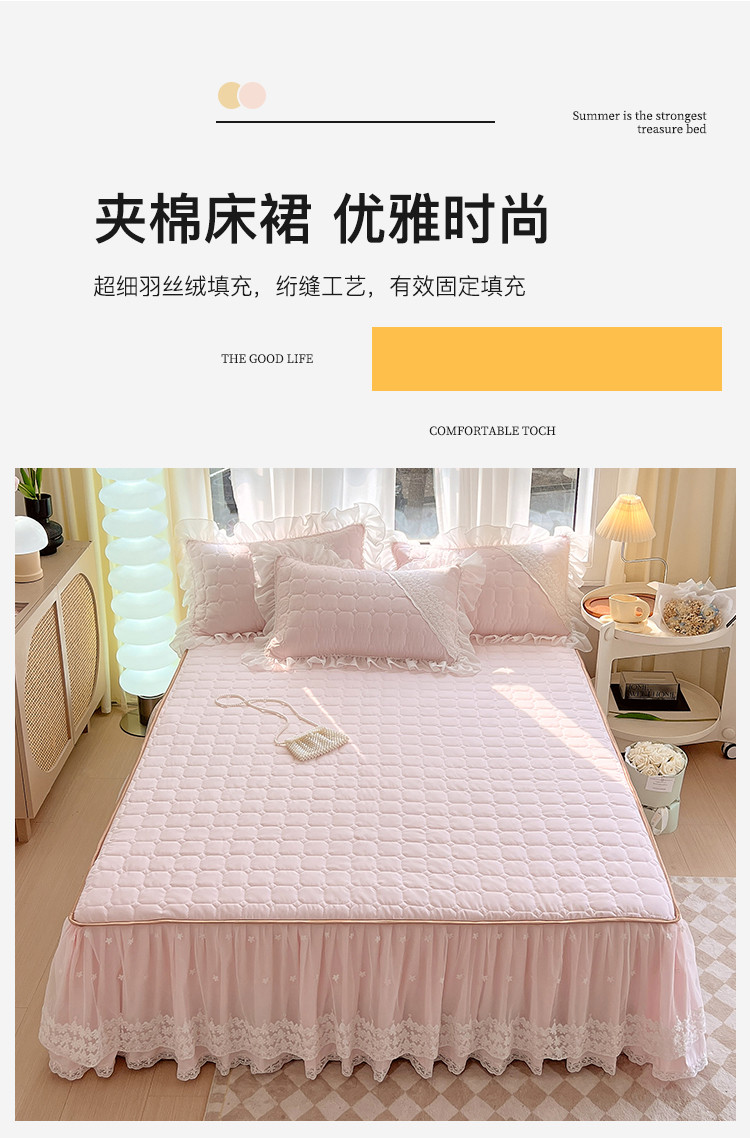 商品名称:罗艺轩 2024新款 泡泡纱夹棉床裙白雪公主系列 少女粉