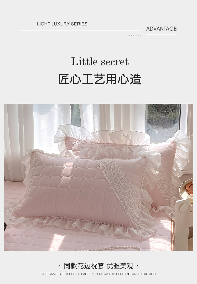 罗艺轩 2024新款 泡泡纱夹棉床裙白雪公主系列 少女粉