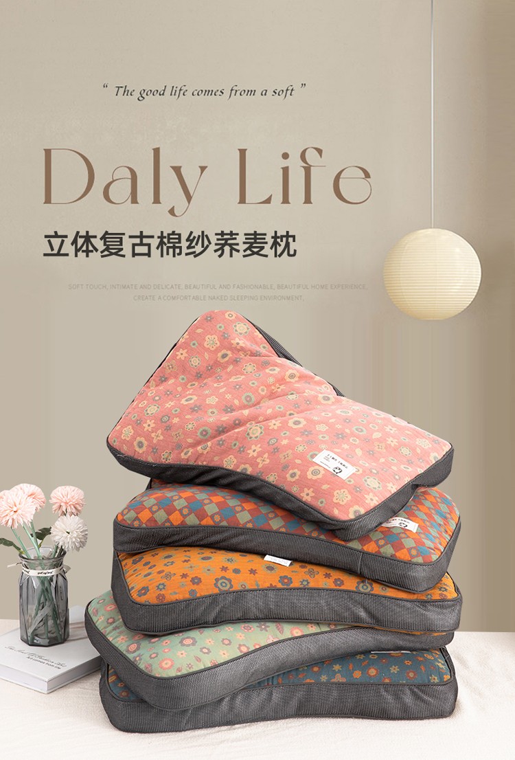 (总)枕之坊 2023新款立体复古棉纱荞麦枕 33*53CM