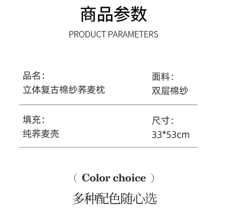 商品名称:(总)枕之坊 2023新款立体复古棉纱荞麦枕 33*53CM