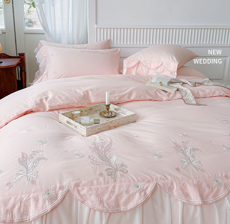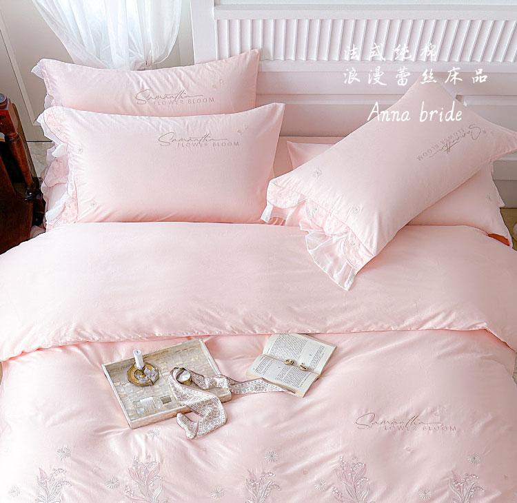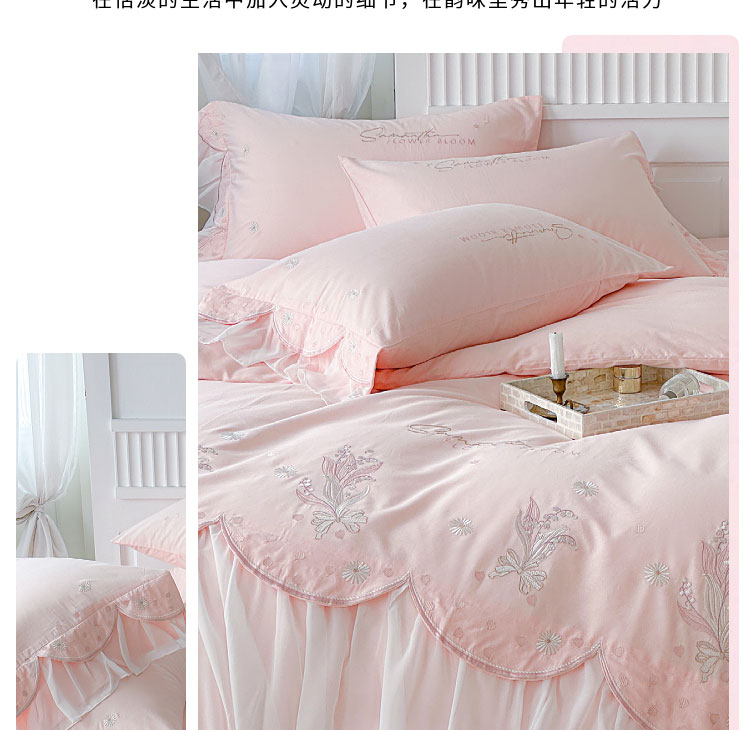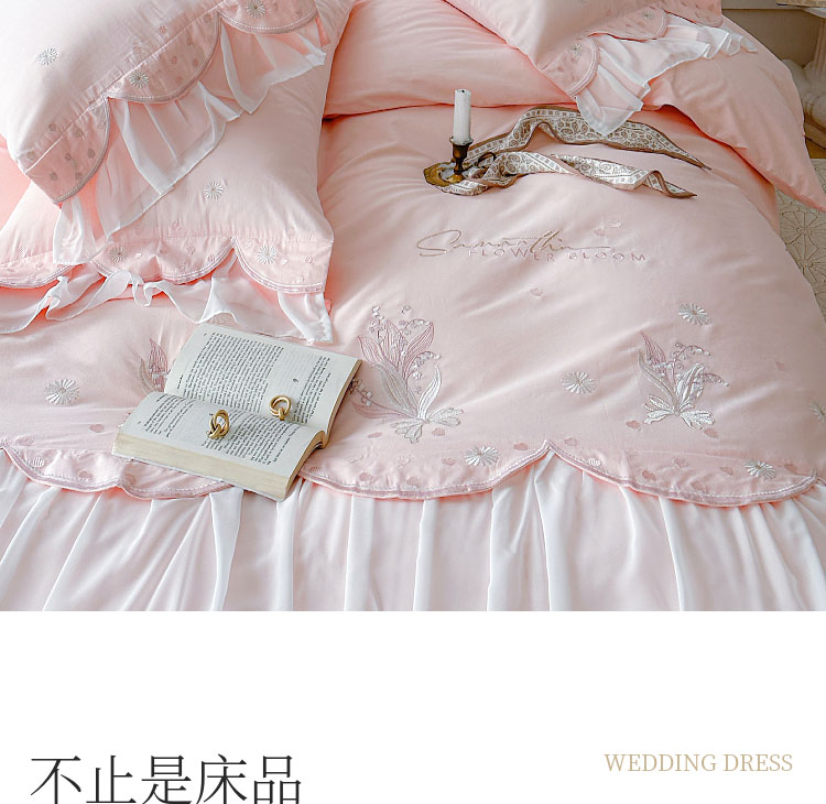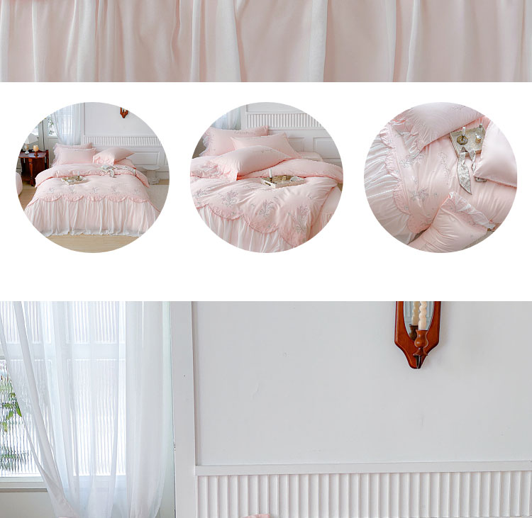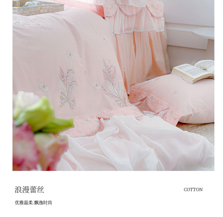 当前位置: 91家纺网 > 商品网购 > 床品套件 > 四件套 > 全棉普通四件套 > 亲亲公主2025新款全棉蕾丝公主风铃兰花开四件套 铃兰花开粉色场景