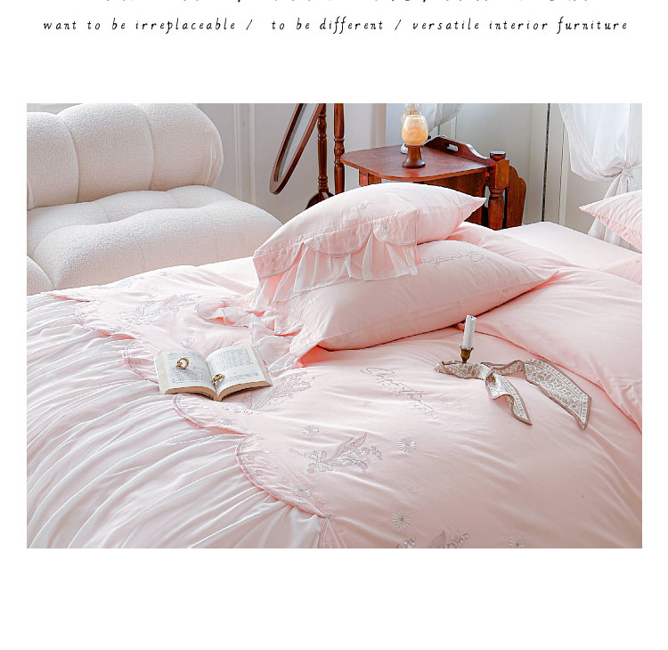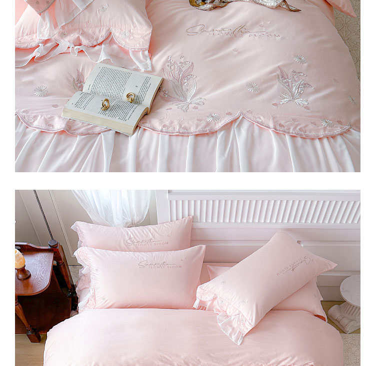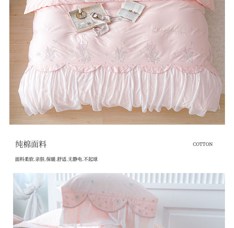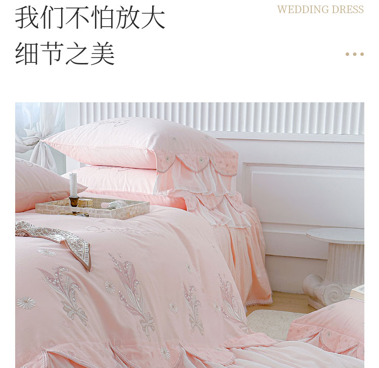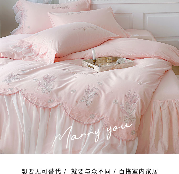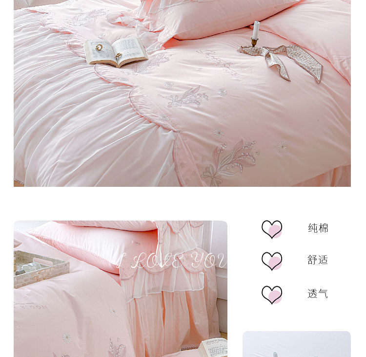 当前位置: 91家纺网 > 商品网购 > 床品套件 > 四件套 > 全棉普通四件套 > 亲亲公主2025新款全棉蕾丝公主风铃兰花开四件套 铃兰花开粉色场景
