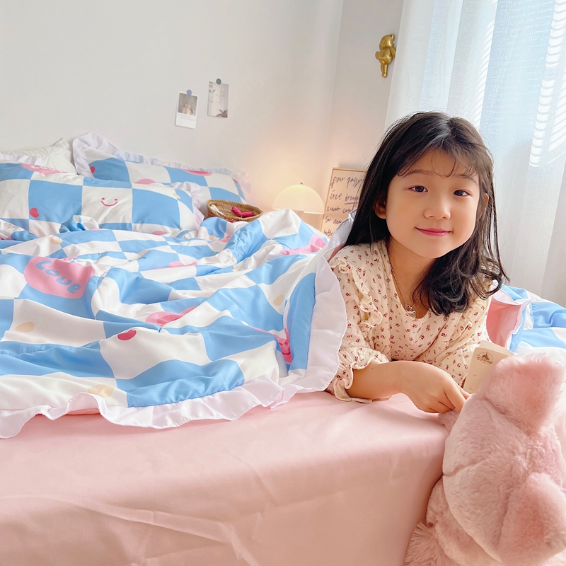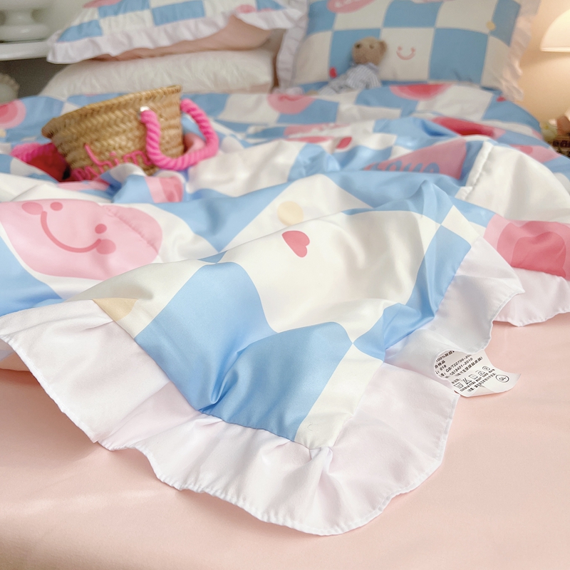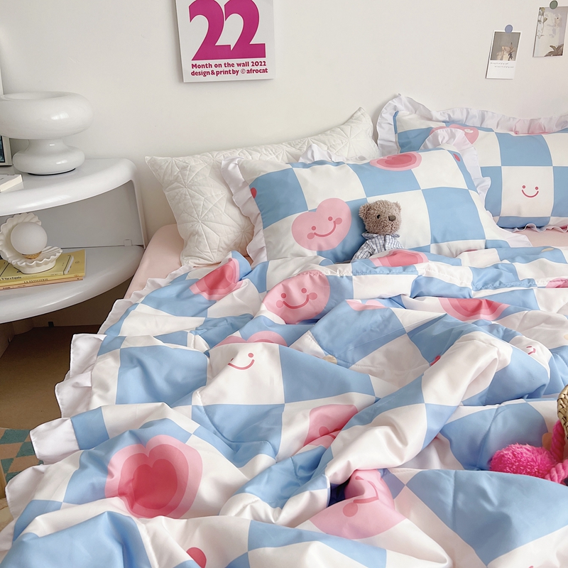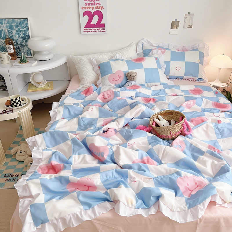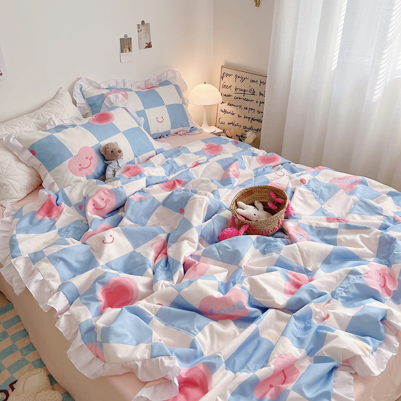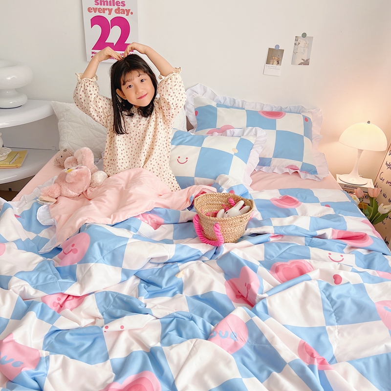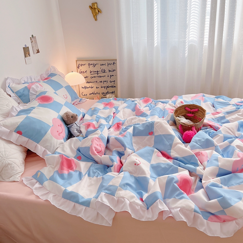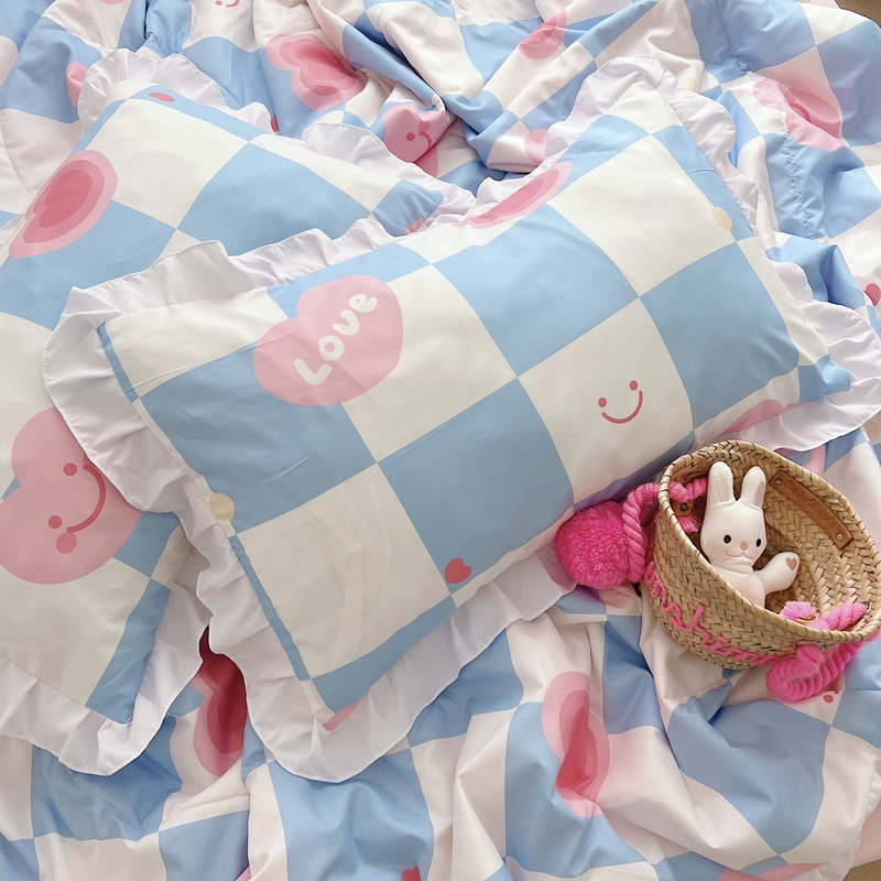 商品名称:顾里 2023新款韩系ins夏被套件 蓝格爱心