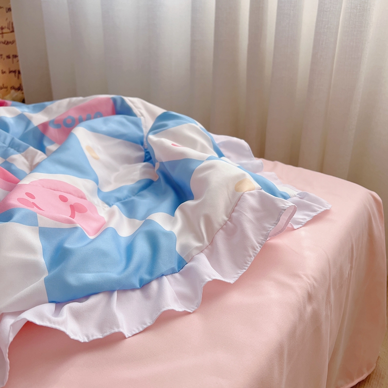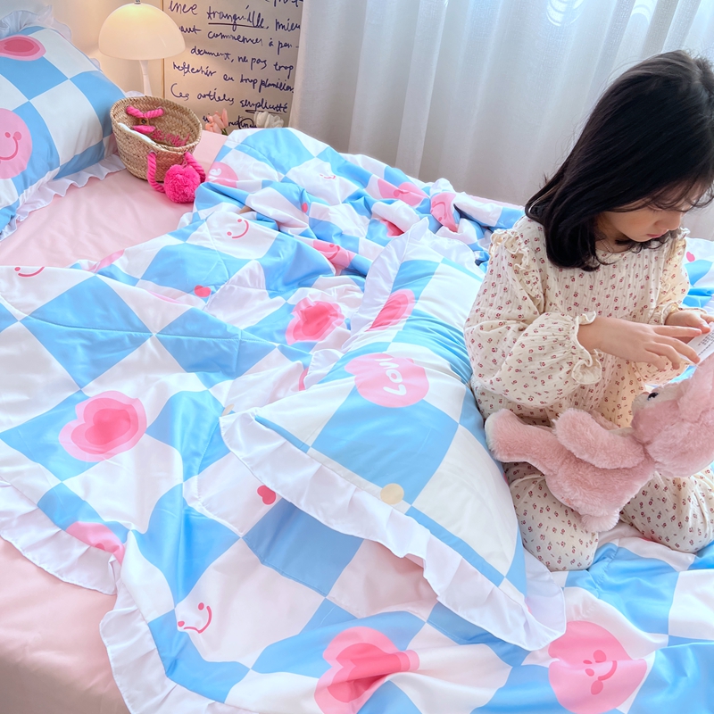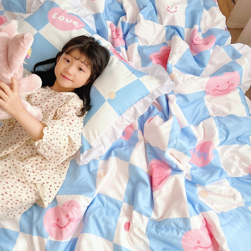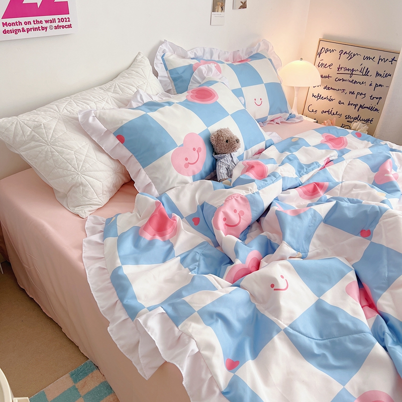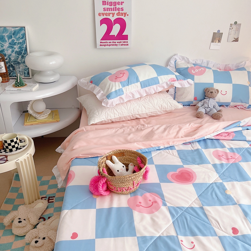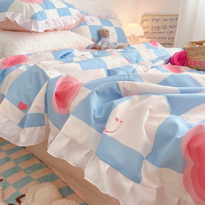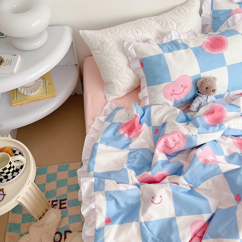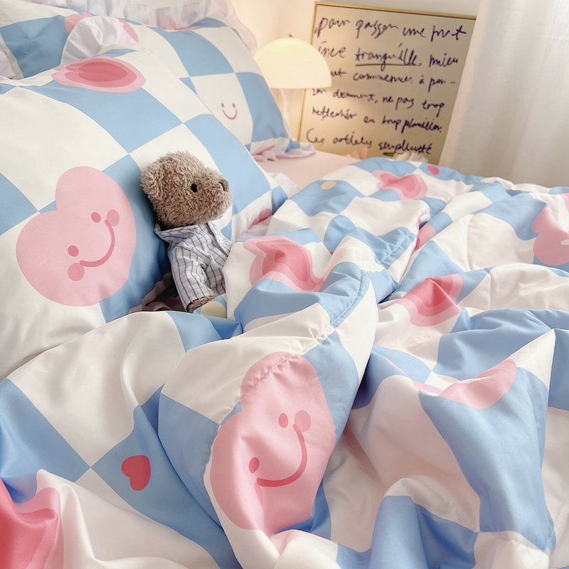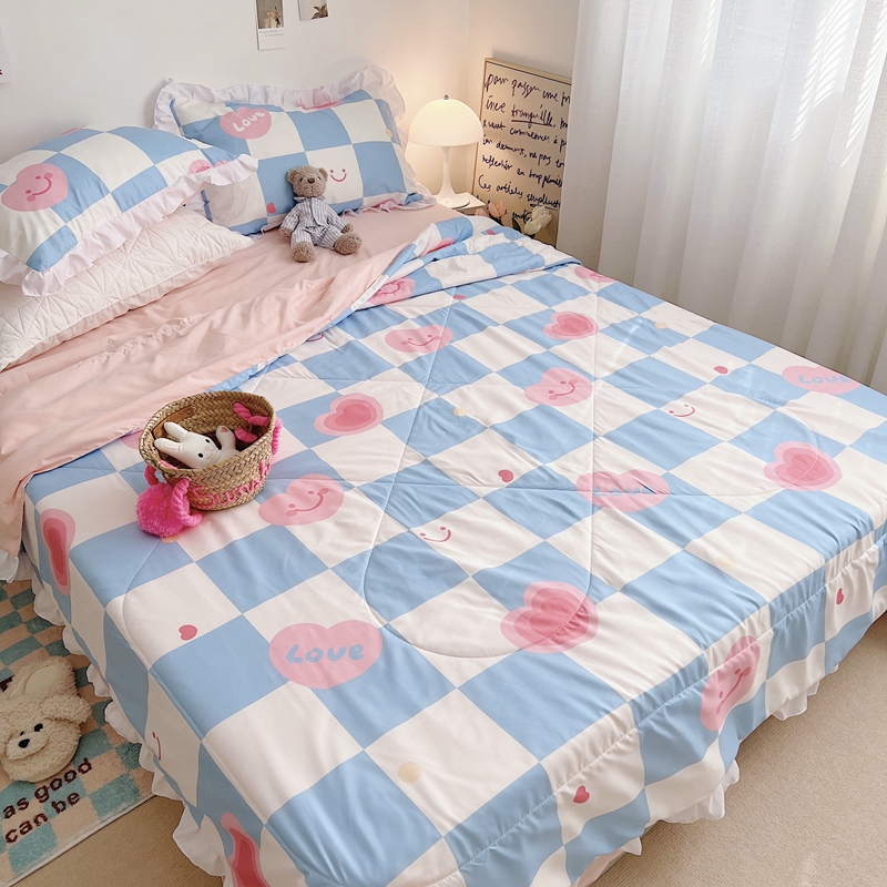 商品名称:顾里 2023新款韩系ins夏被套件 蓝格爱心