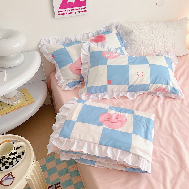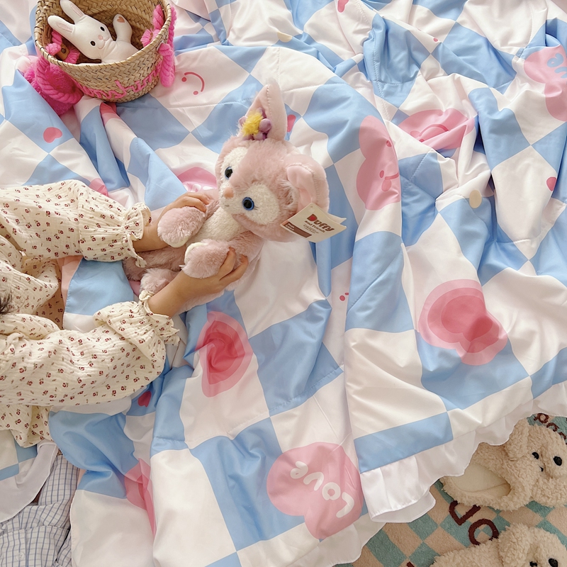 顾里 2023新款韩系ins夏被套件 蓝格爱心