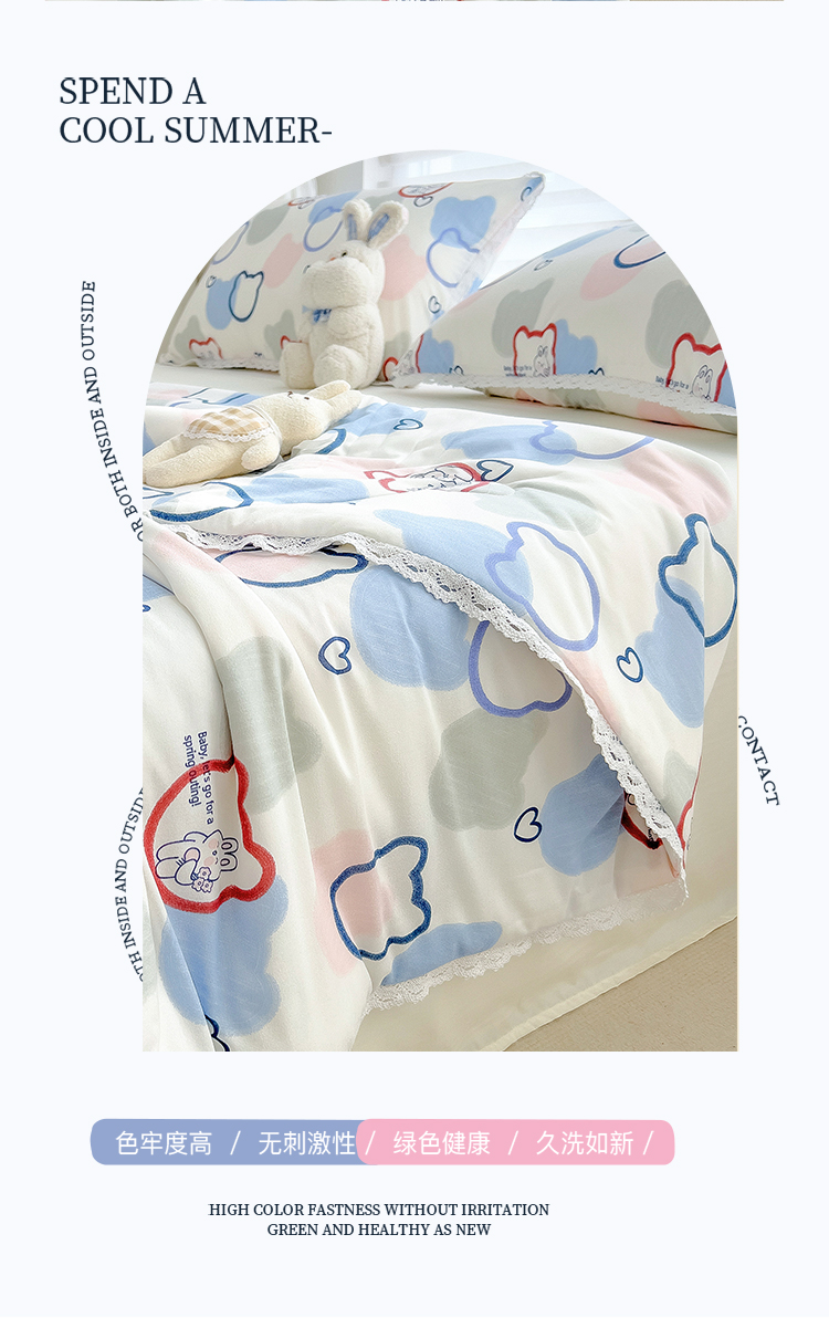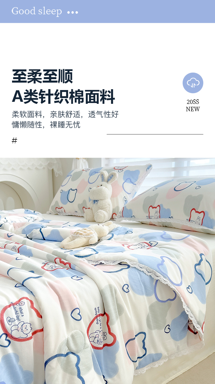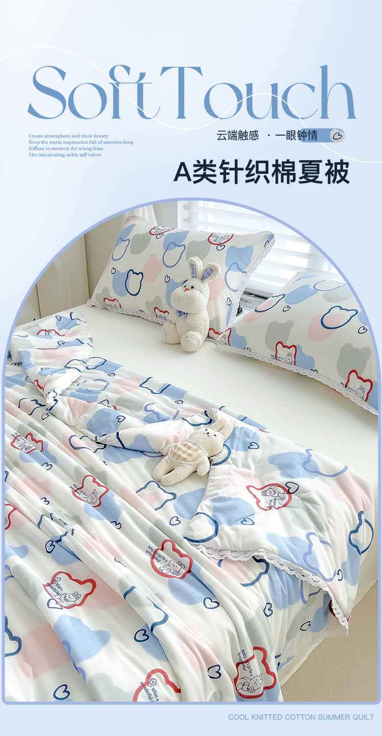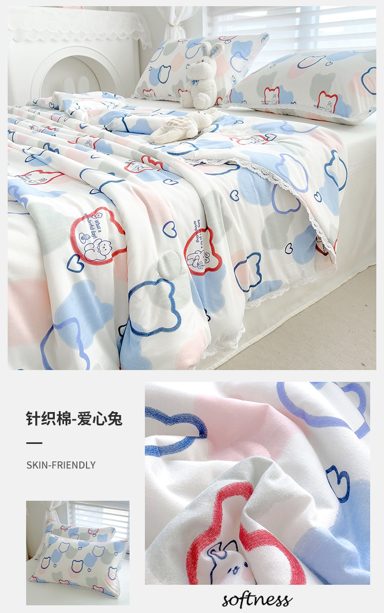 商品名称:丽美人 2023新款A类针织棉夏被 爱心兔