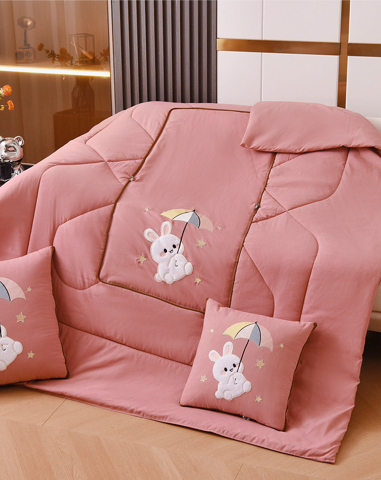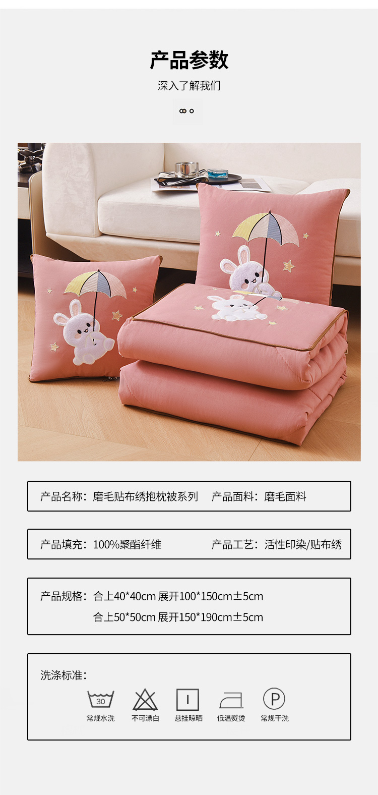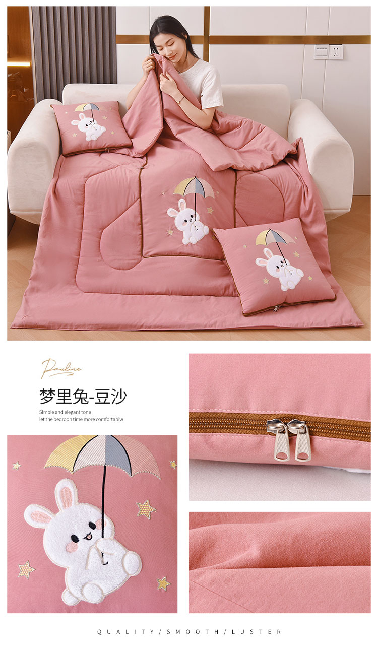 商品名称:阳光依佰 2023新款磨毛贴布绣四季款抱枕被-梦里兔 梦里兔-豆沙