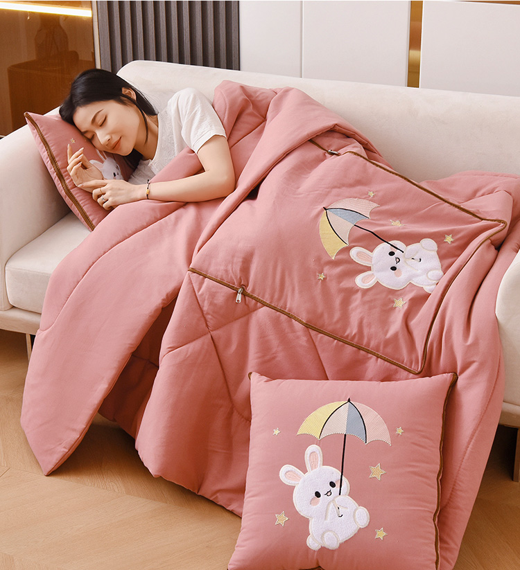 (总)阳光依佰 2023新款磨毛贴布绣四季款抱枕被-梦里兔,梦里兔-豆沙,梦里兔-粉色,梦里兔-明黄,梦里兔-墨绿,梦里兔-浅灰,梦里兔-浅蓝,梦里兔-星空蓝