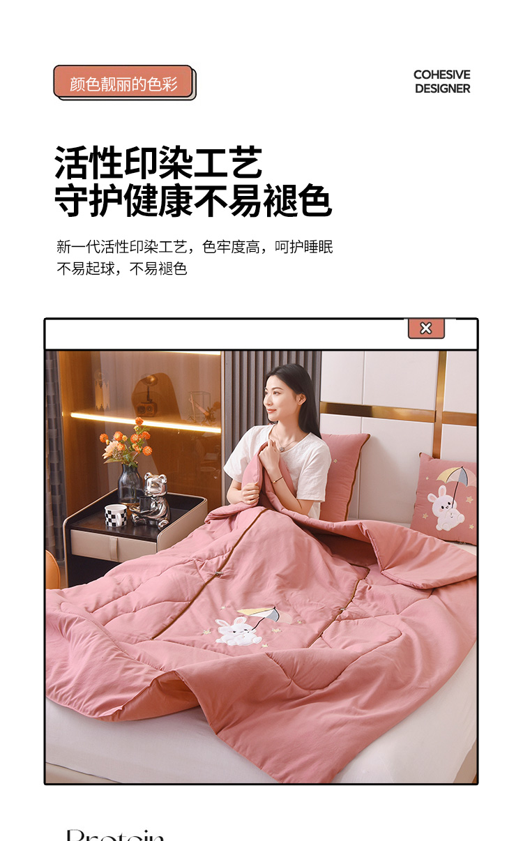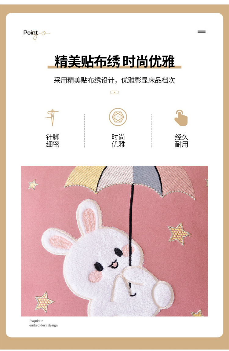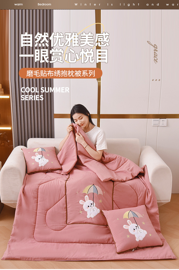 阳光依佰 2023新款磨毛贴布绣四季款抱枕被-梦里兔 梦里兔-豆沙