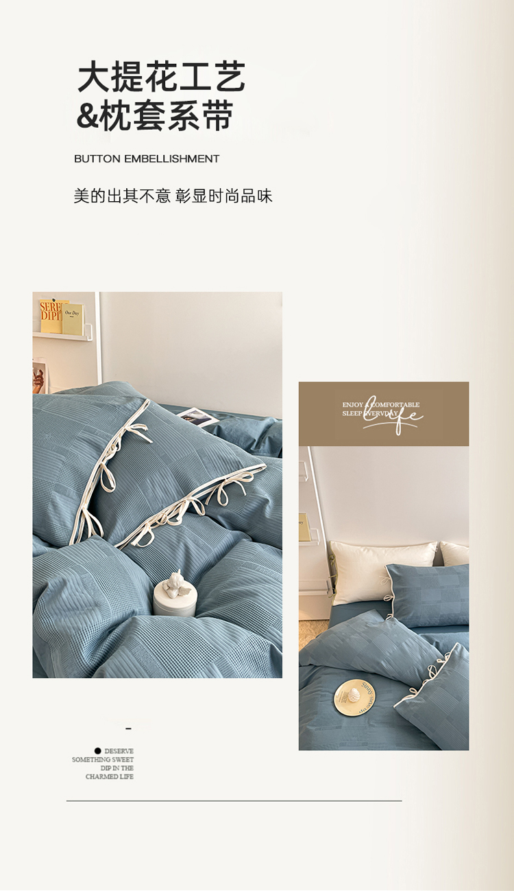 (总)玛奇朵 2025新款韩系少女全棉立体提花四件套-,青纱粉黛