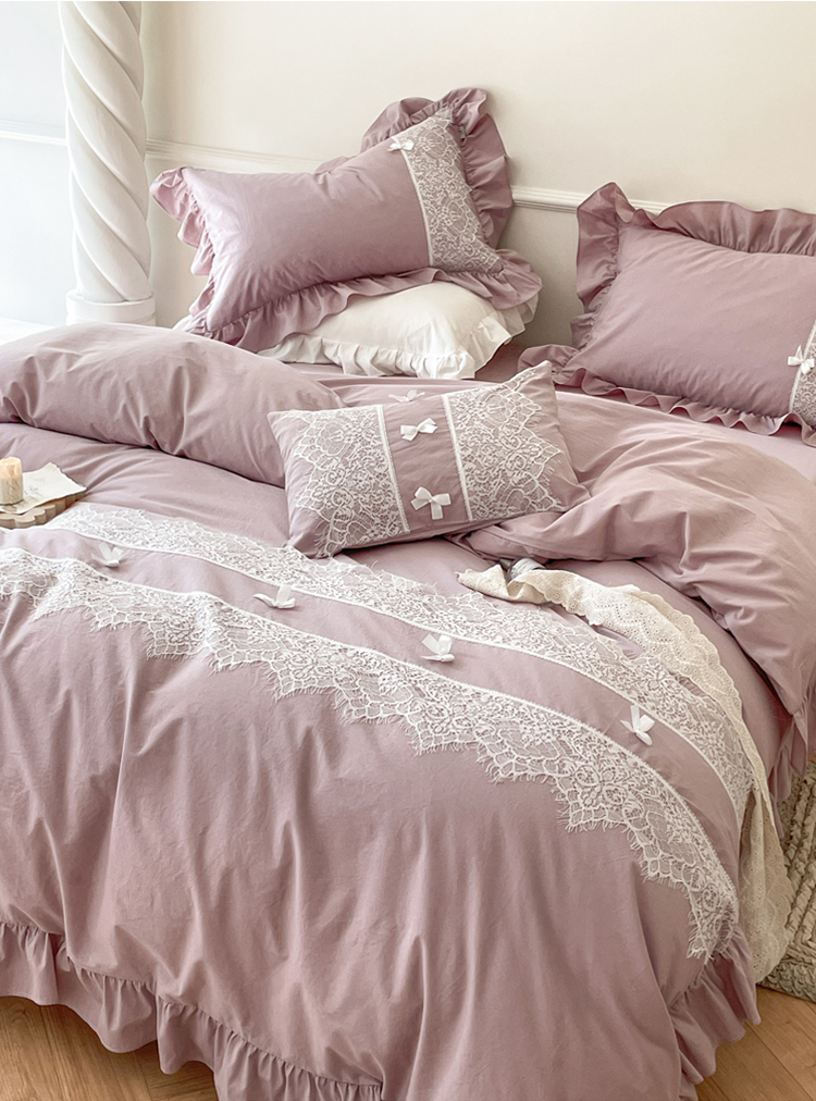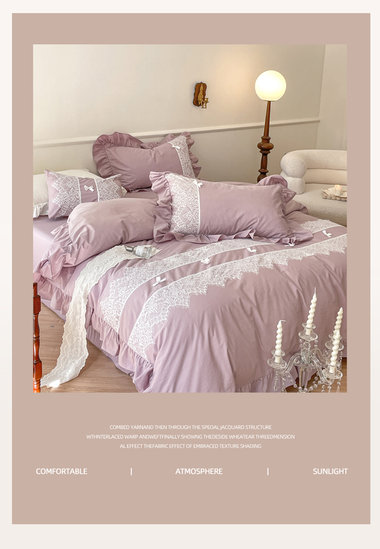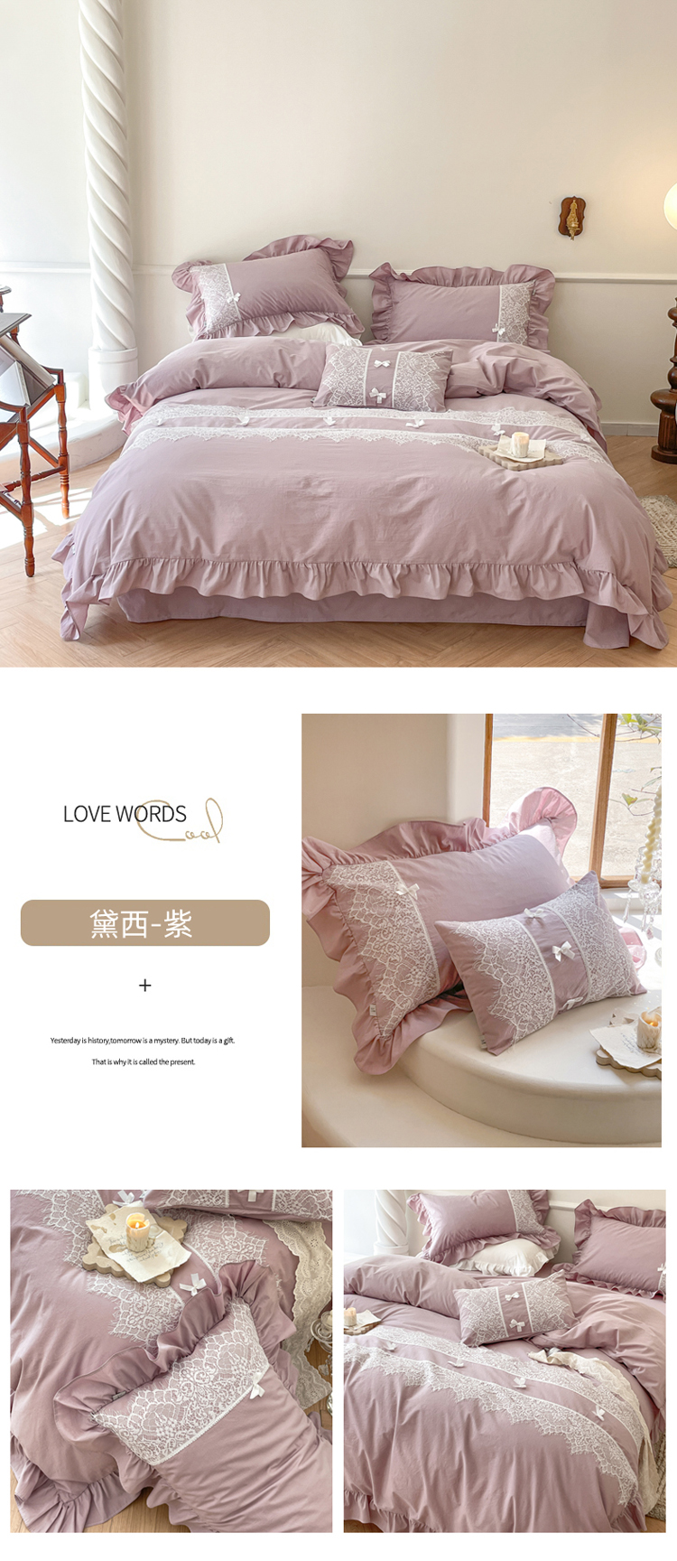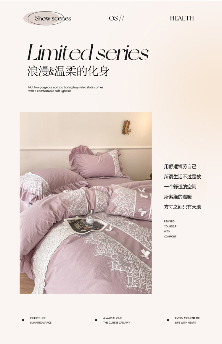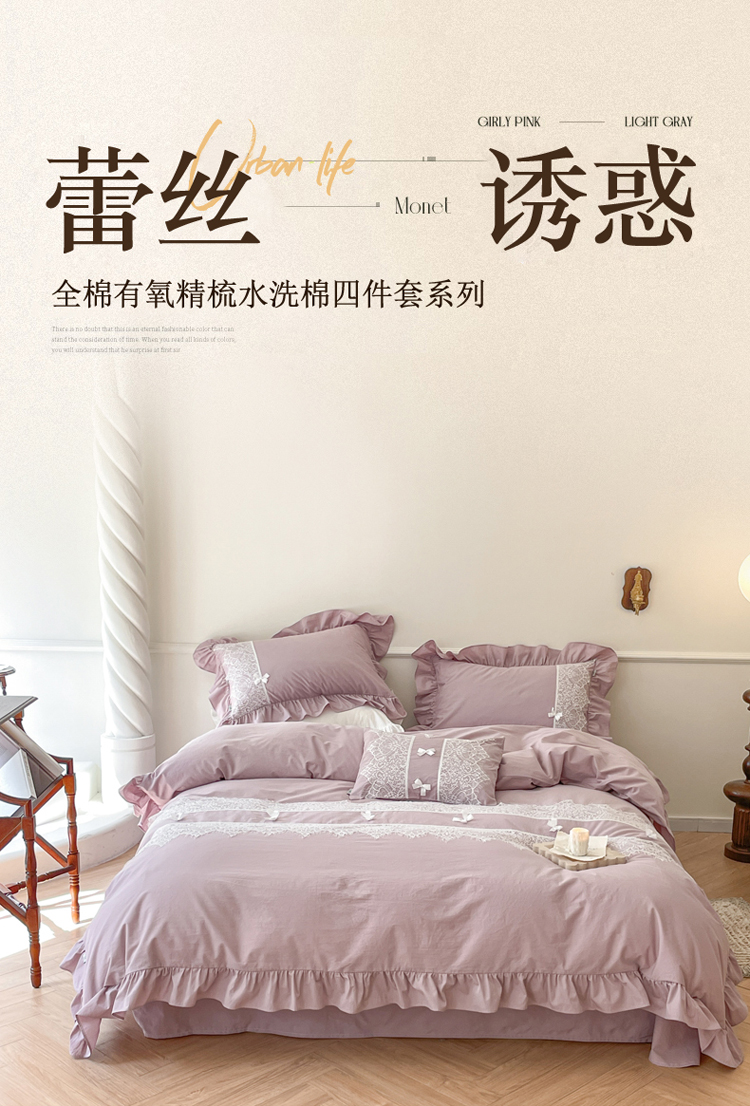 (总)玛奇朵 2023新款全棉有氧水洗棉蕾丝小香风-安娜系列,安娜-木槿紫,安娜-奶咖色,安娜-栀子白