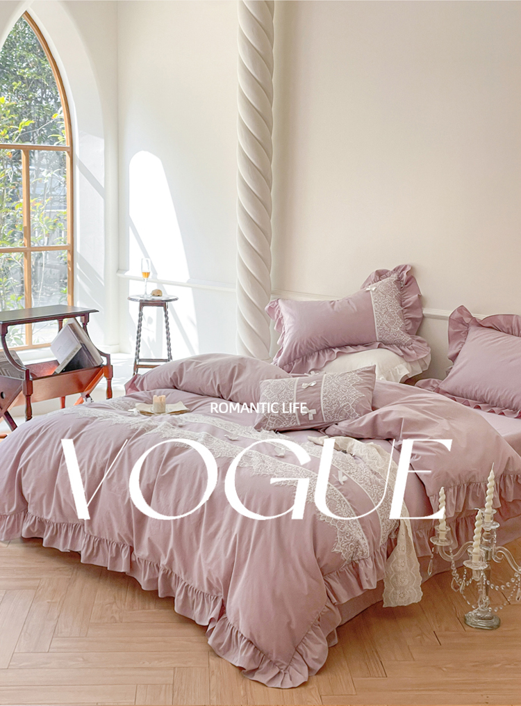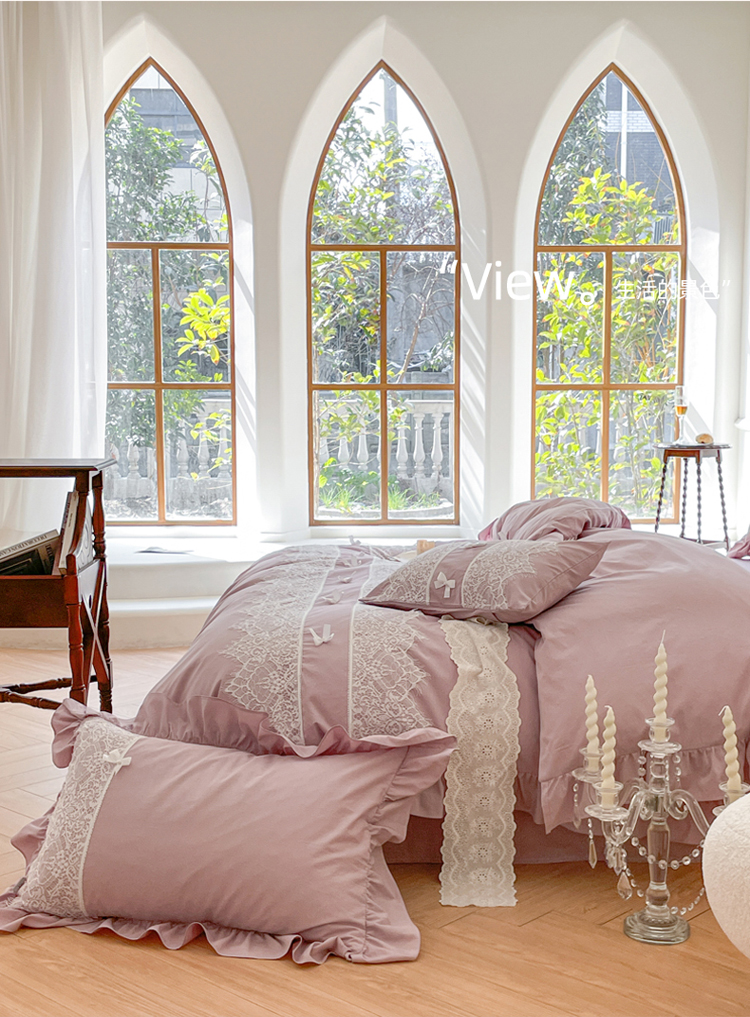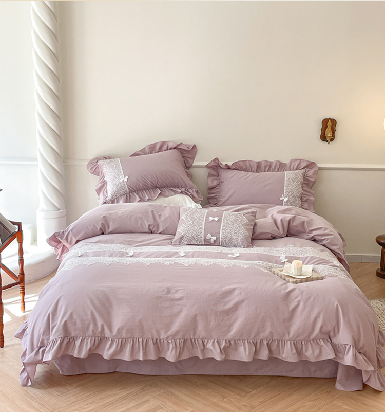 (总)玛奇朵 2025新款韩系少女全棉立体提花四件套-,青纱粉黛