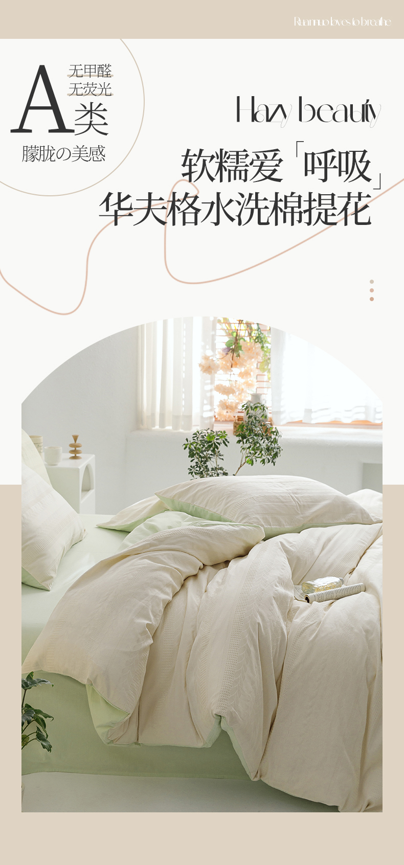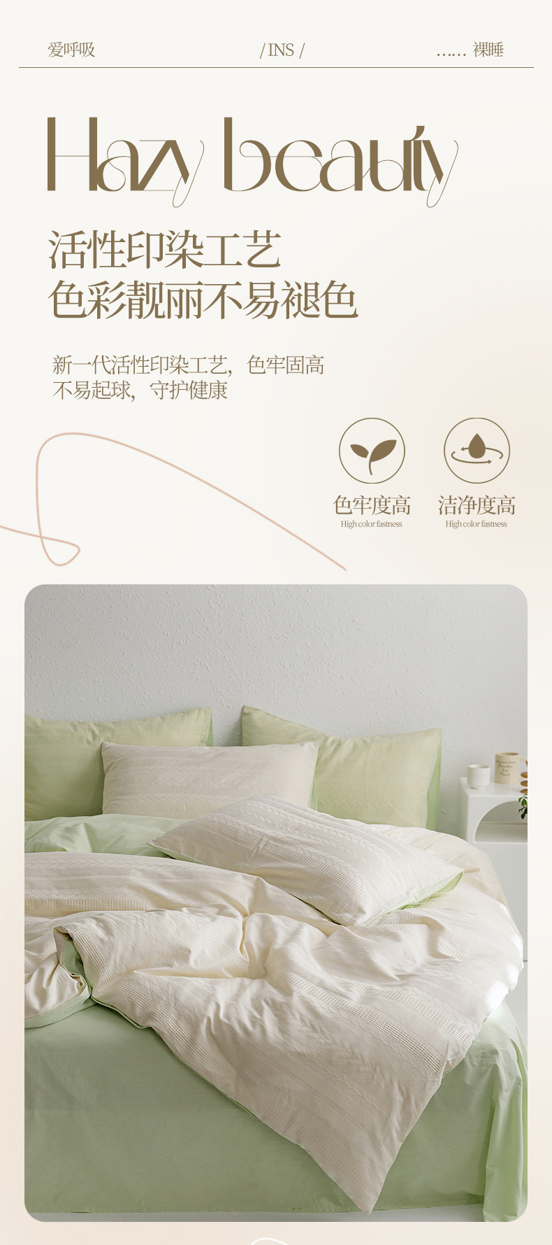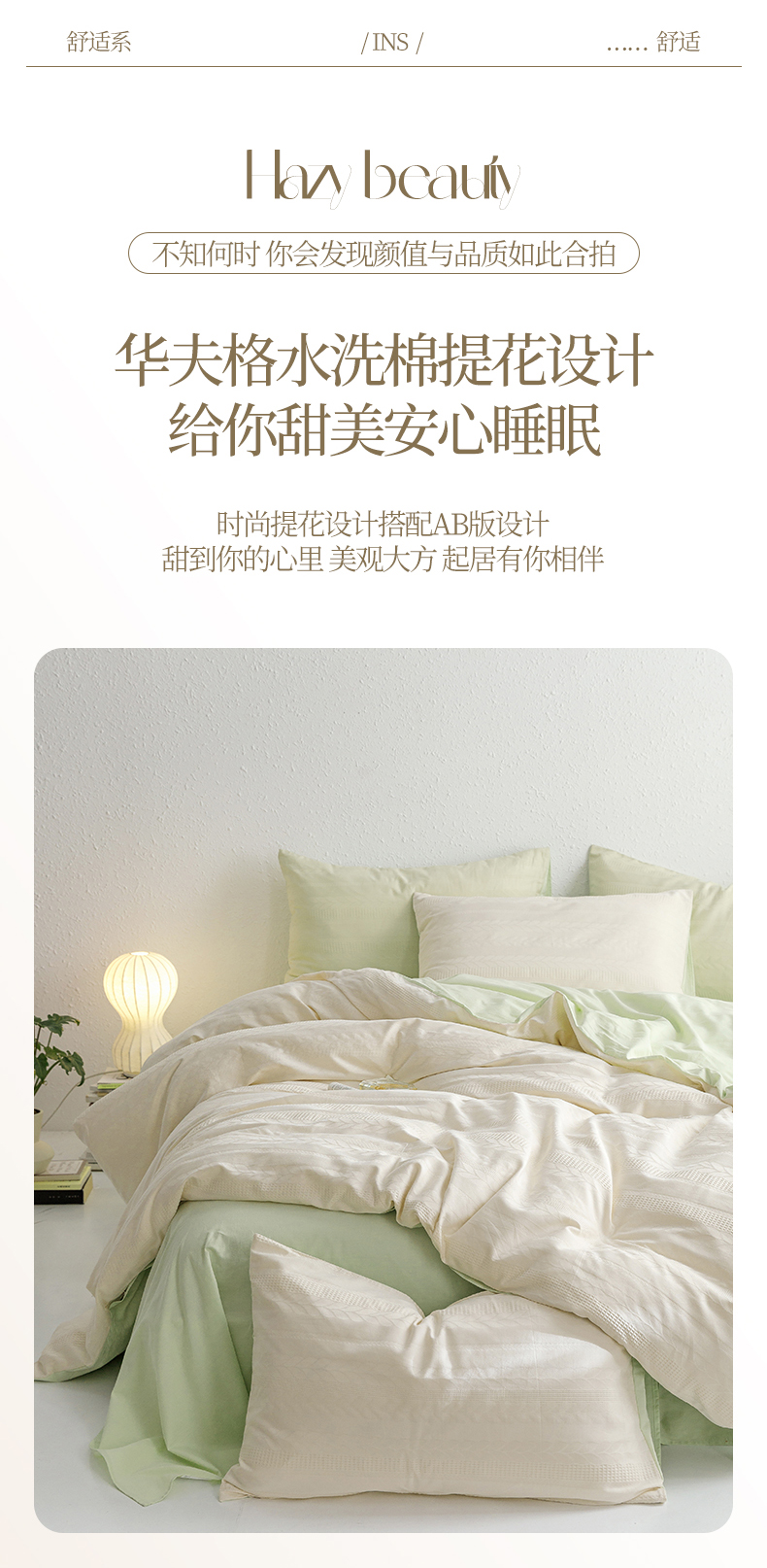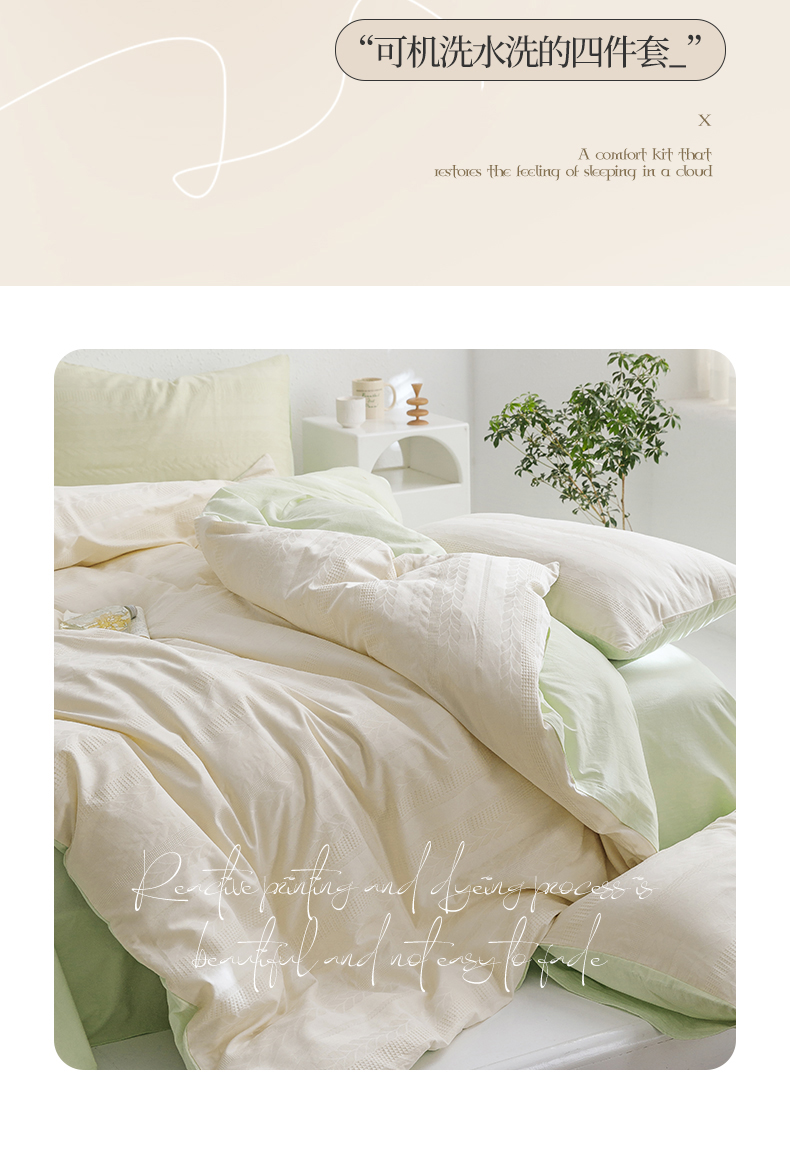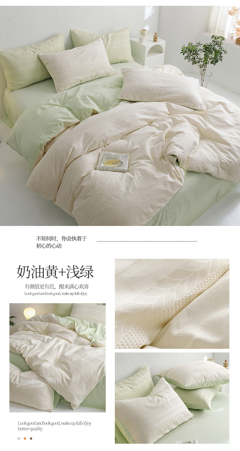 当前位置: 91家纺网 > 商品网购 > 床品套件 > 四件套 > 水洗棉四件套 > 艾莱家纺 2023新款大麦华夫格水洗棉大提花四件套 大麦:奶油黄+浅绿