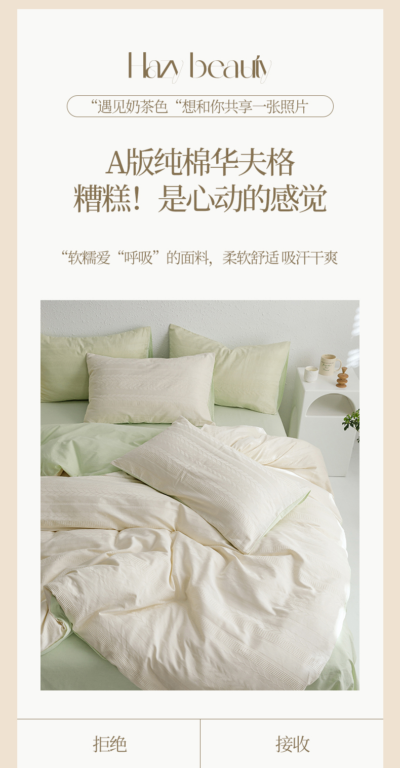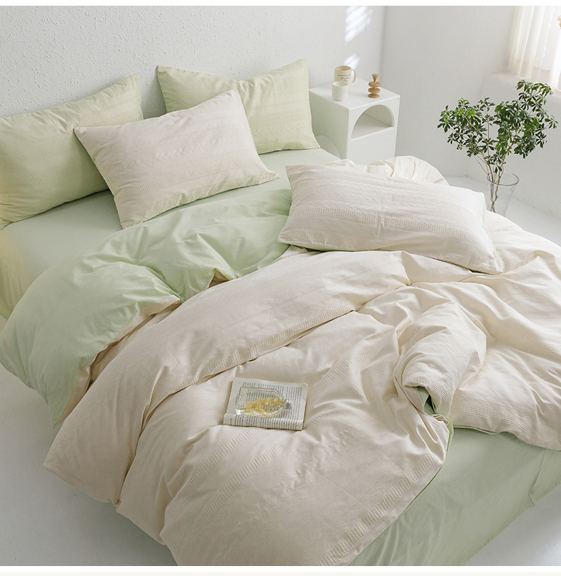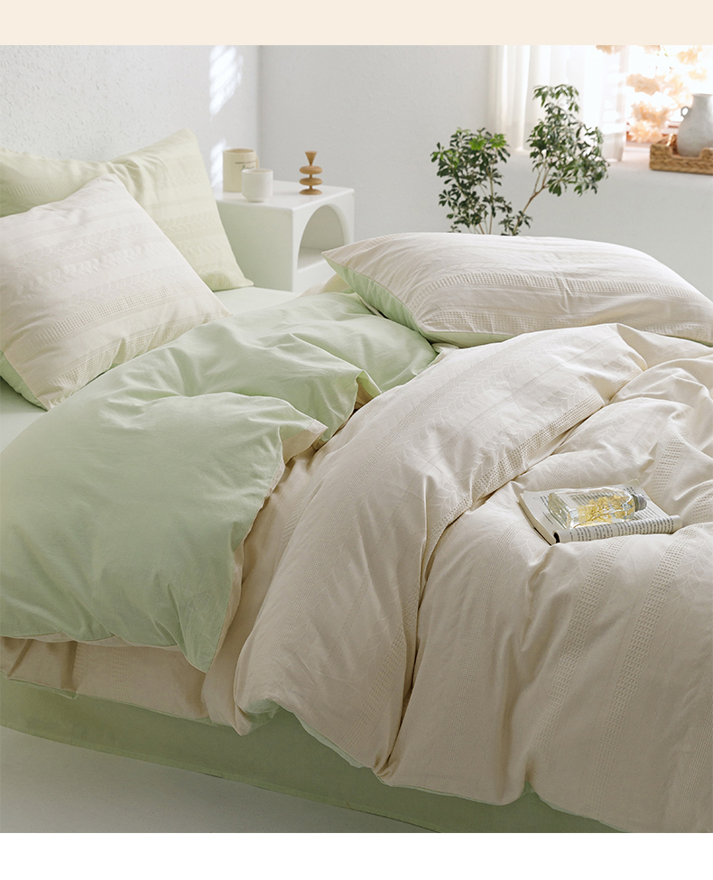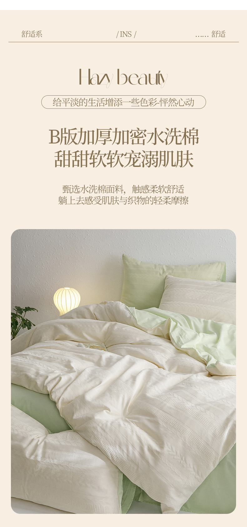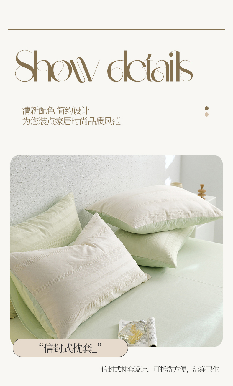 当前位置: 91家纺网 > 商品网购 > 床品套件 > 四件套 > 水洗棉四件套 > 艾莱家纺 2023新款大麦华夫格水洗棉大提花四件套 大麦:奶油黄+浅绿
