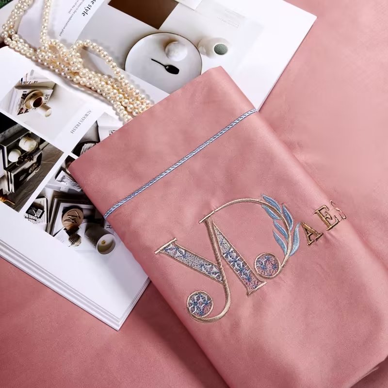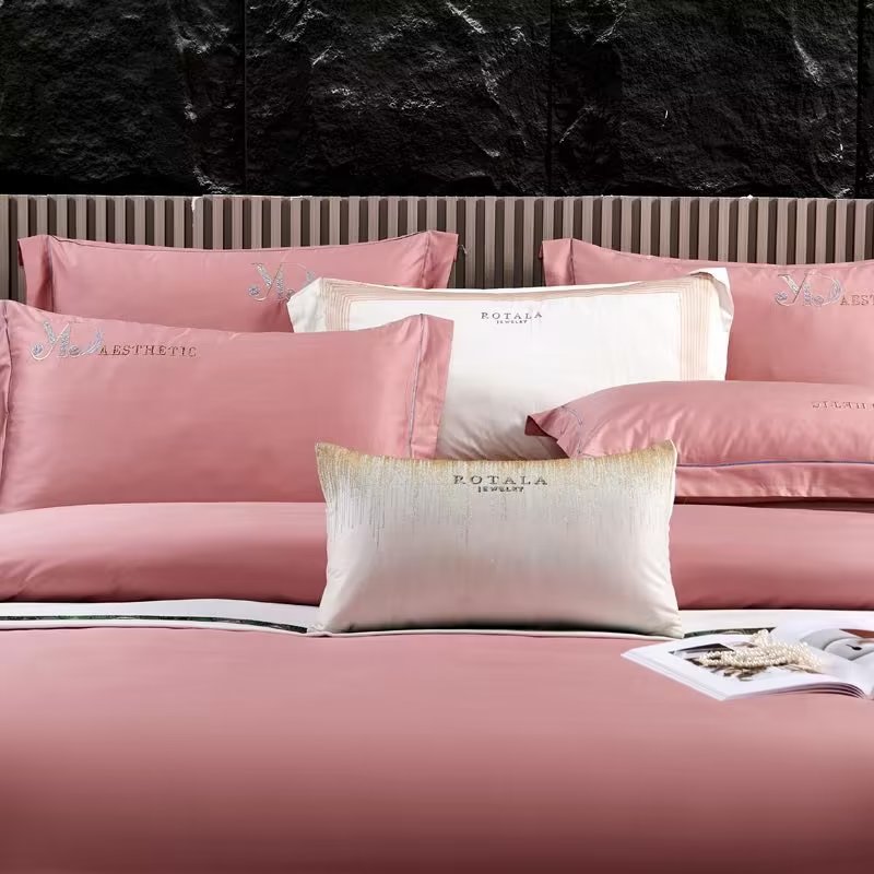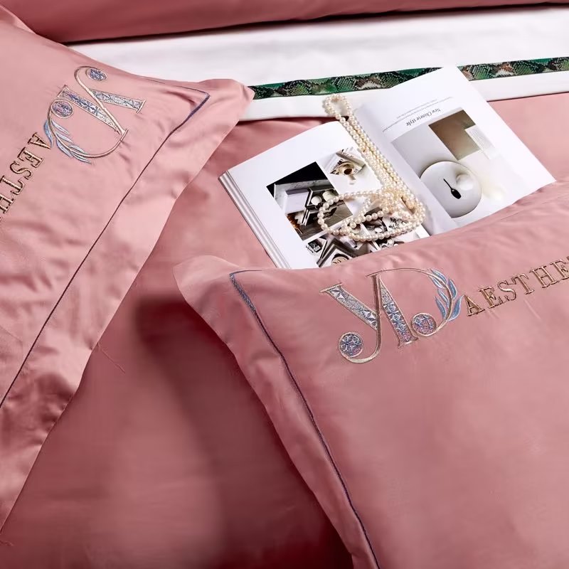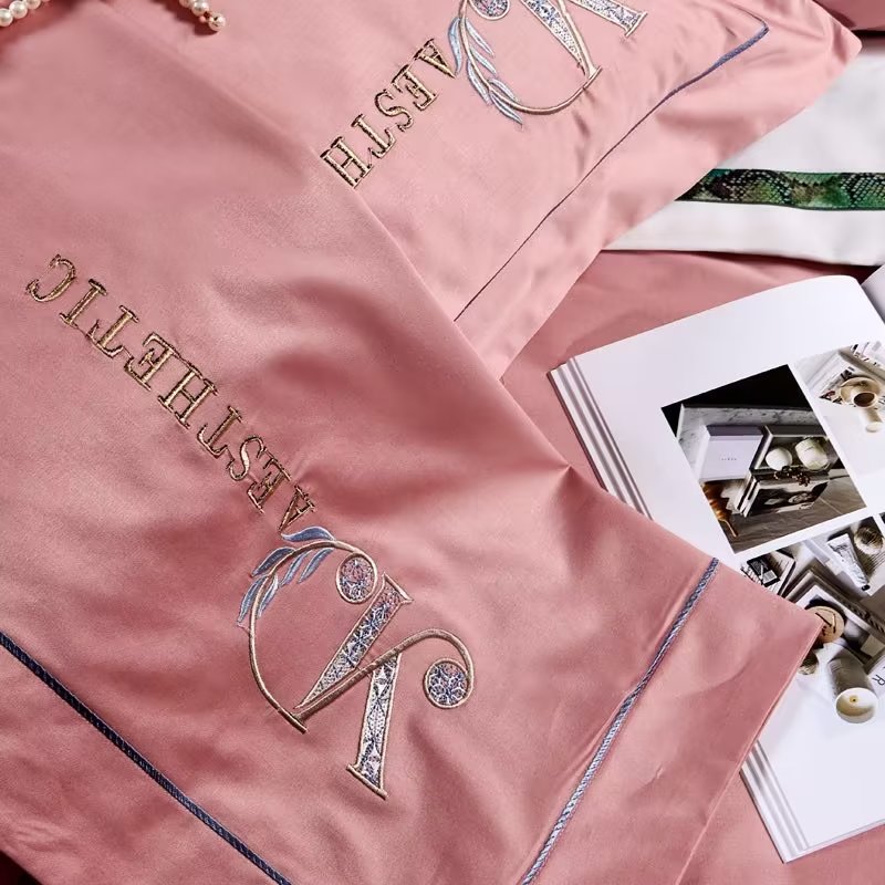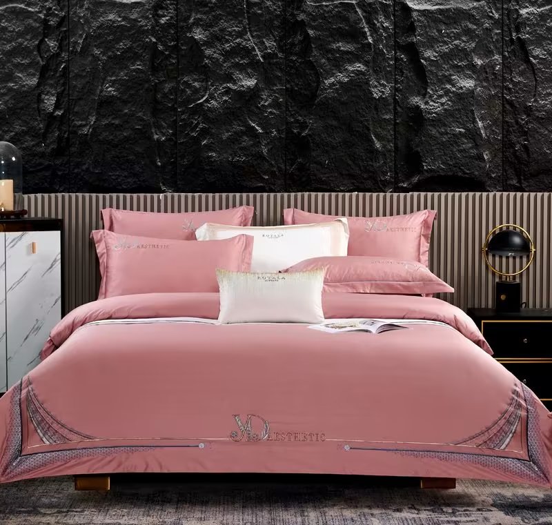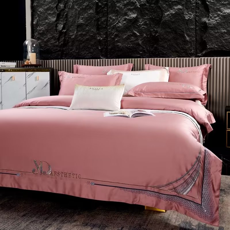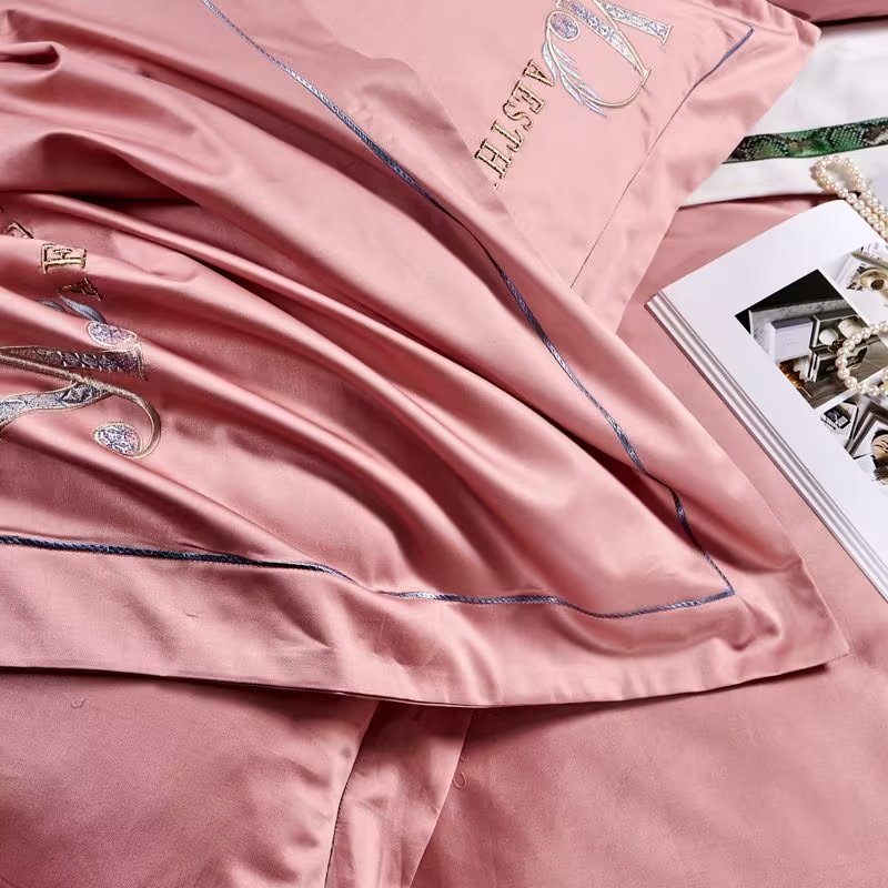 U品汇 2023新品120支60S长绒棉宽边刺绣花贡缎纯棉全棉四件套 祖马龙-樱花粉