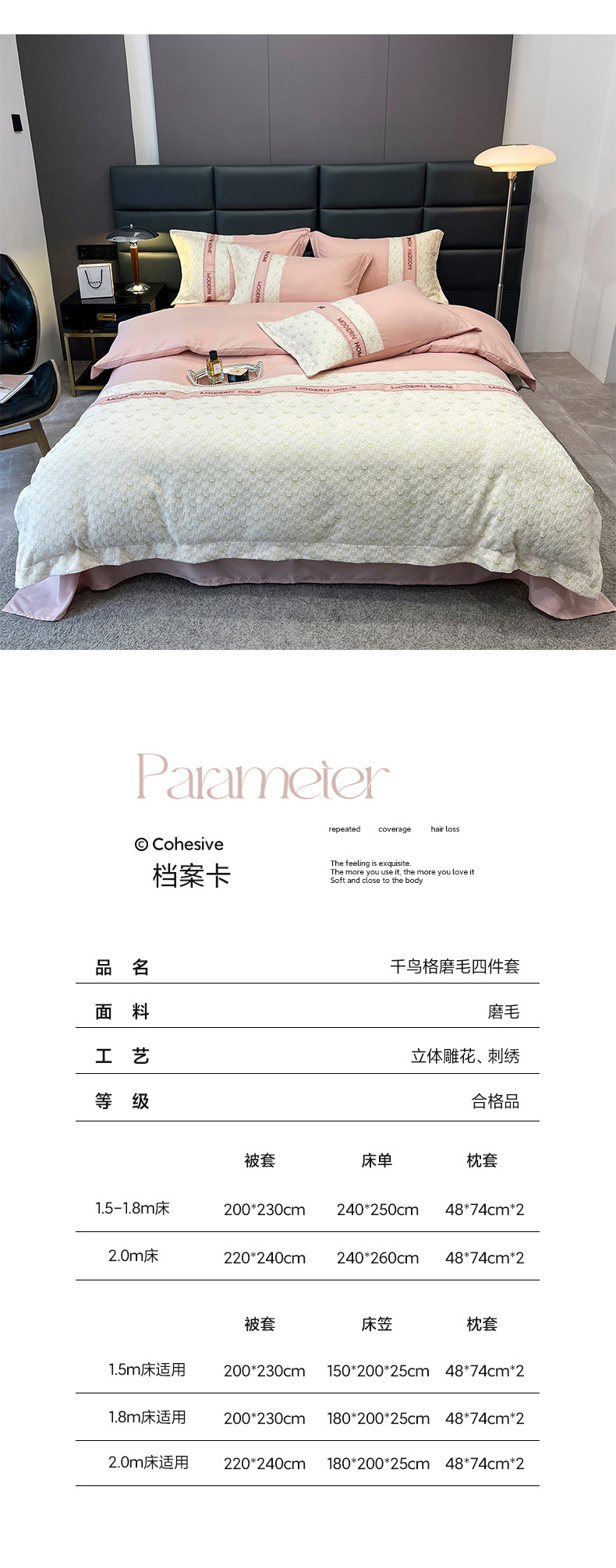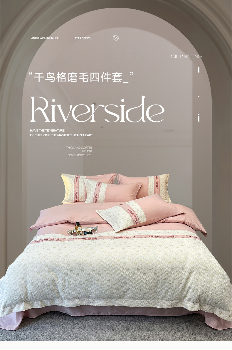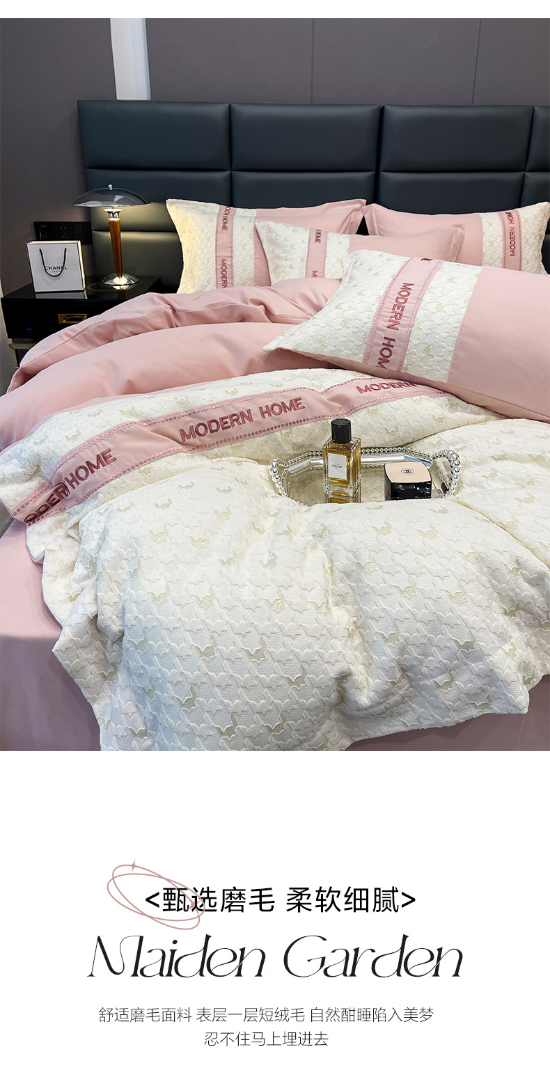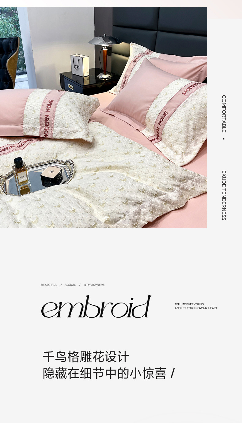 当前位置: 91家纺网 > 商品网购 > 床品套件 > 四件套 > 普通磨毛四件套 > (总) 布可 2025新款千鸟格立体雕花刺绣四件套