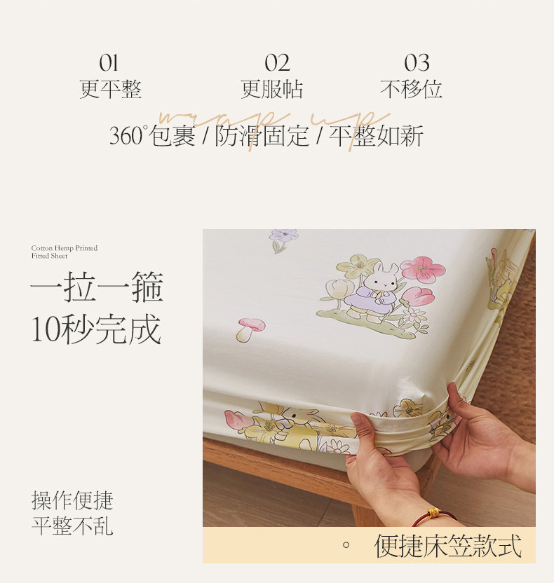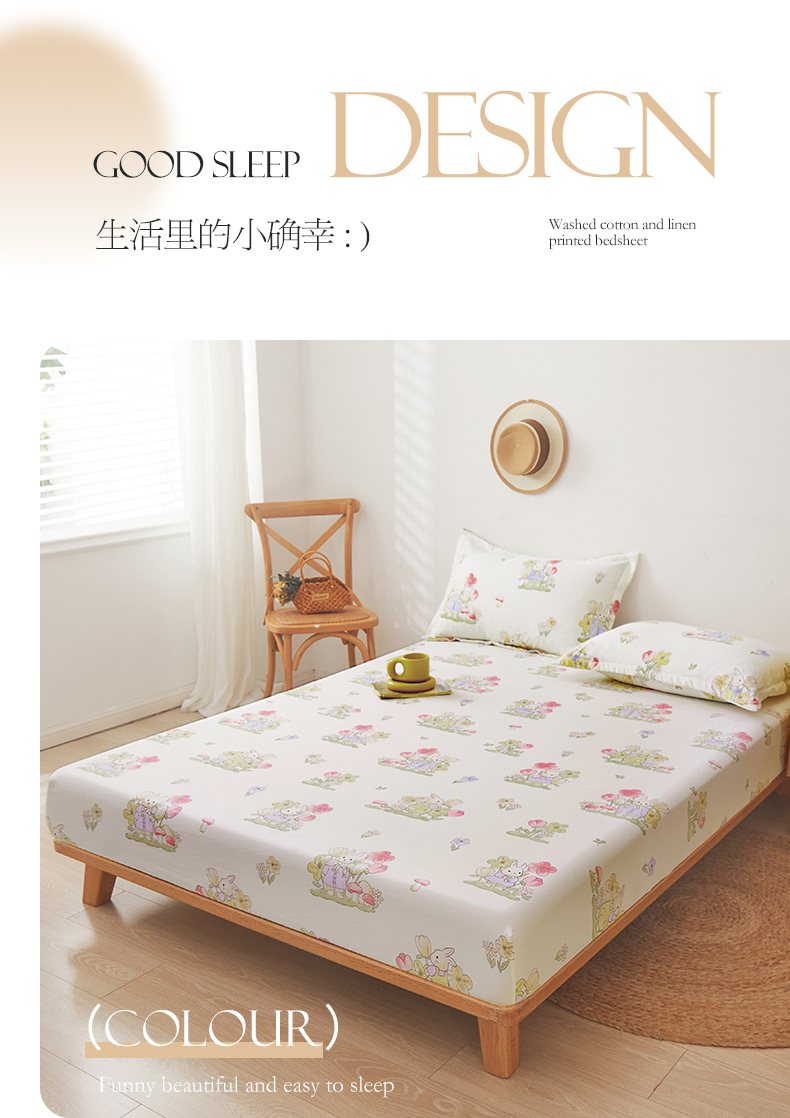 当前位置: 91家纺网 > 商品网购 > 床上用品 > 床笠 > 梦舒羽 2025新款水洗棉麻防尘抗菌床笠全包床罩 花中兔