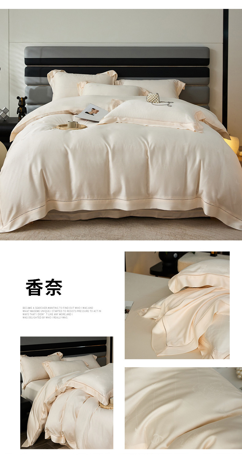 商品名称:安莱生活2023年新品60天丝提花镂空工艺款四件套 012香奈
