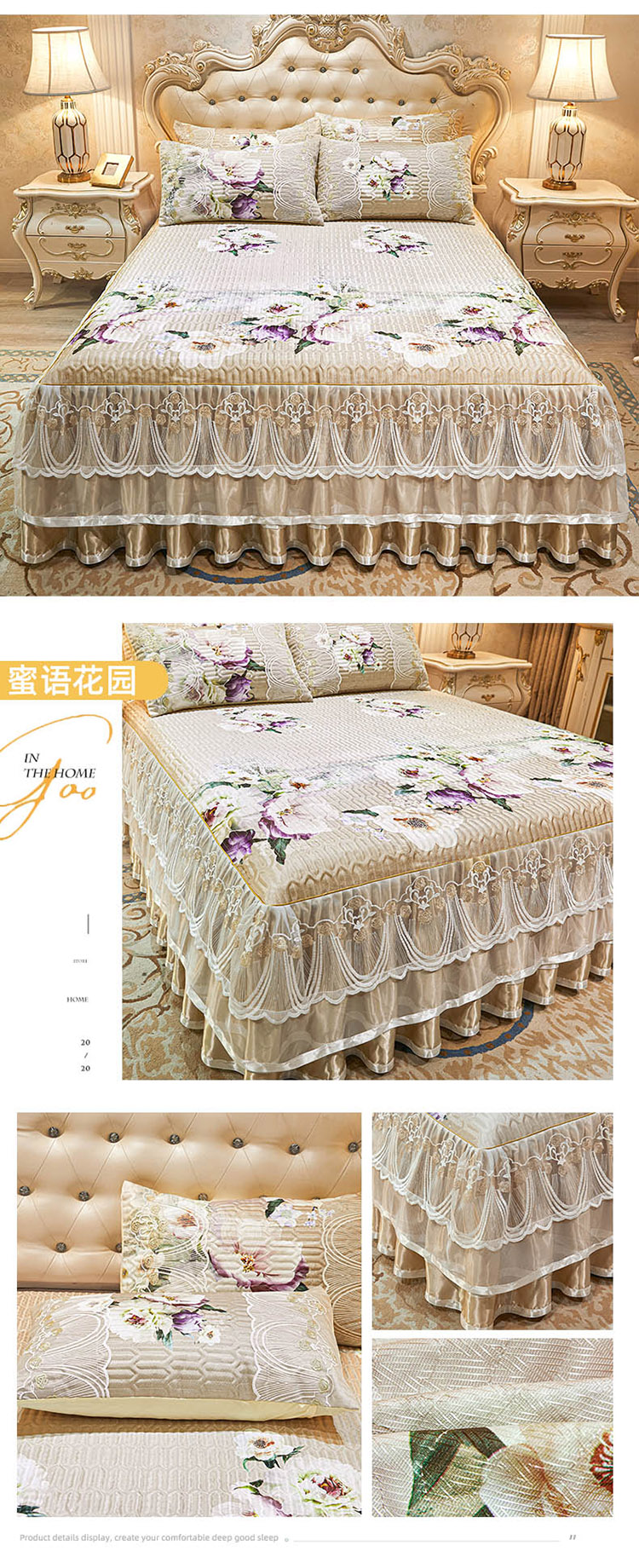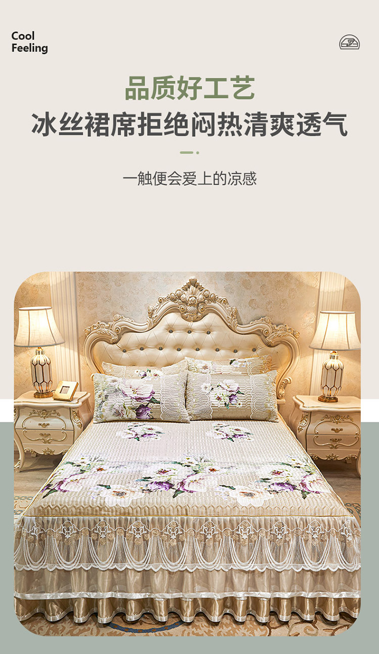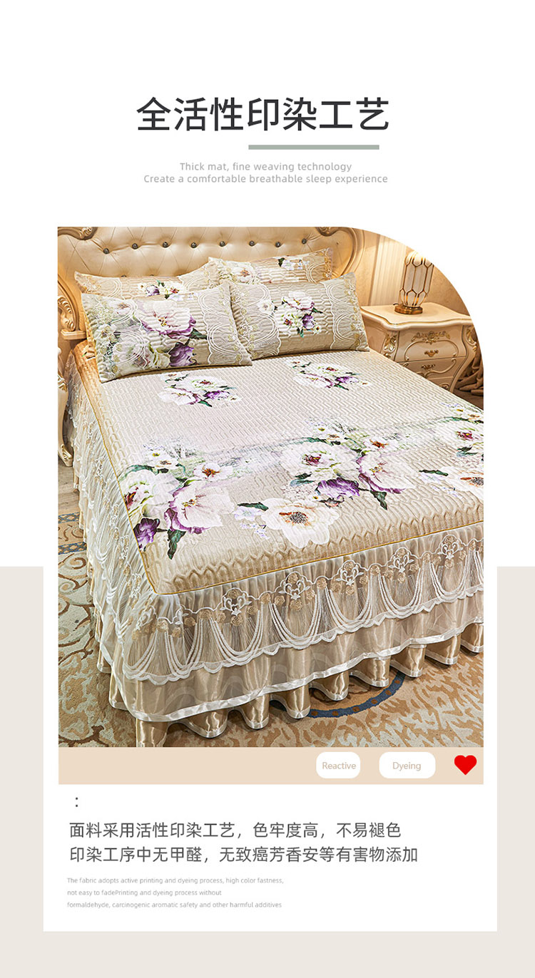 商品名称:恋尚 2024新款韩式夹棉床裙凉席三件套 蜜语花园