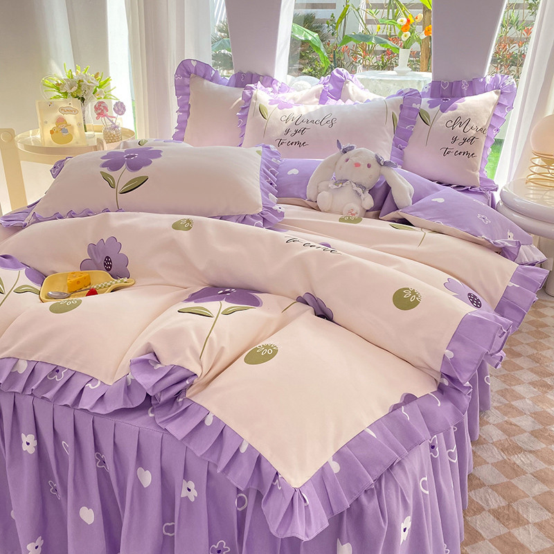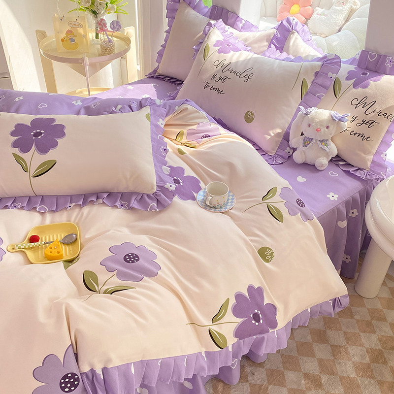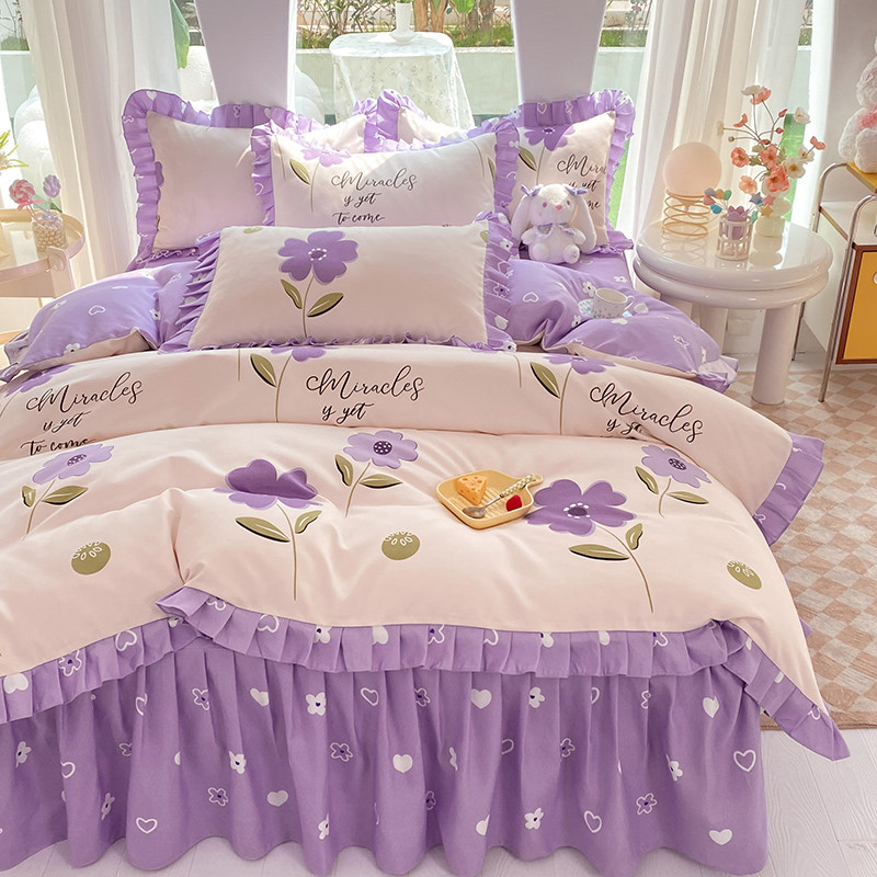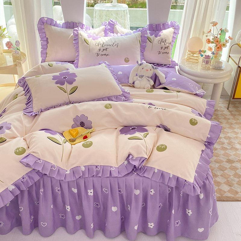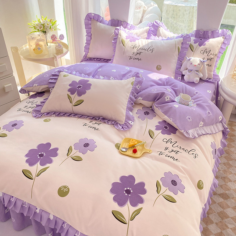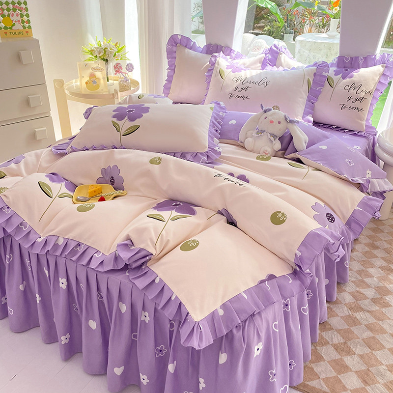 优逸2025韩版公主风床裙款床单款四件套迷迭香