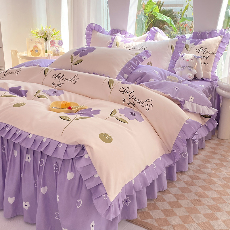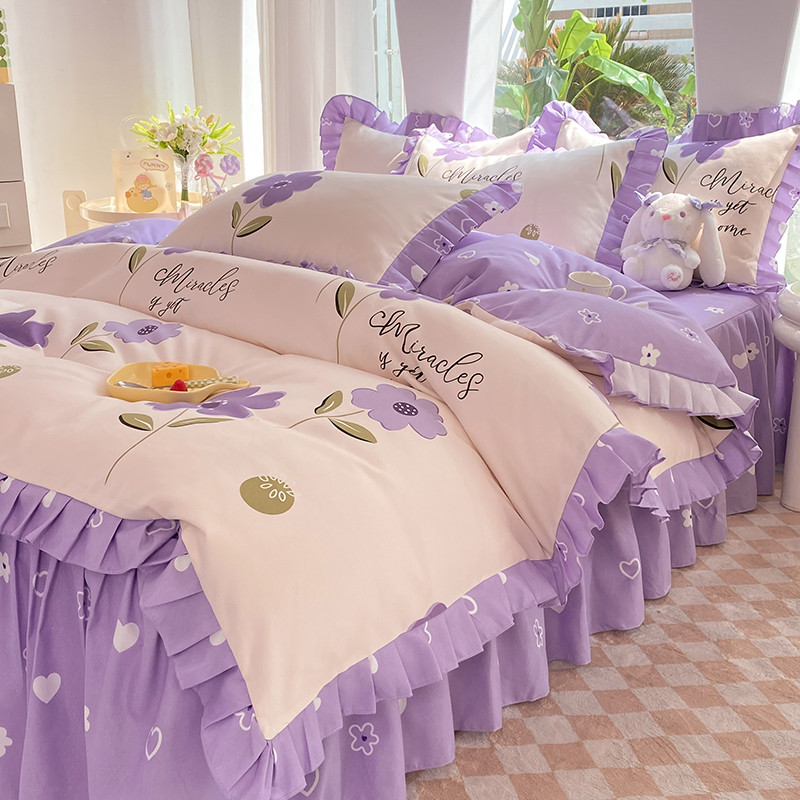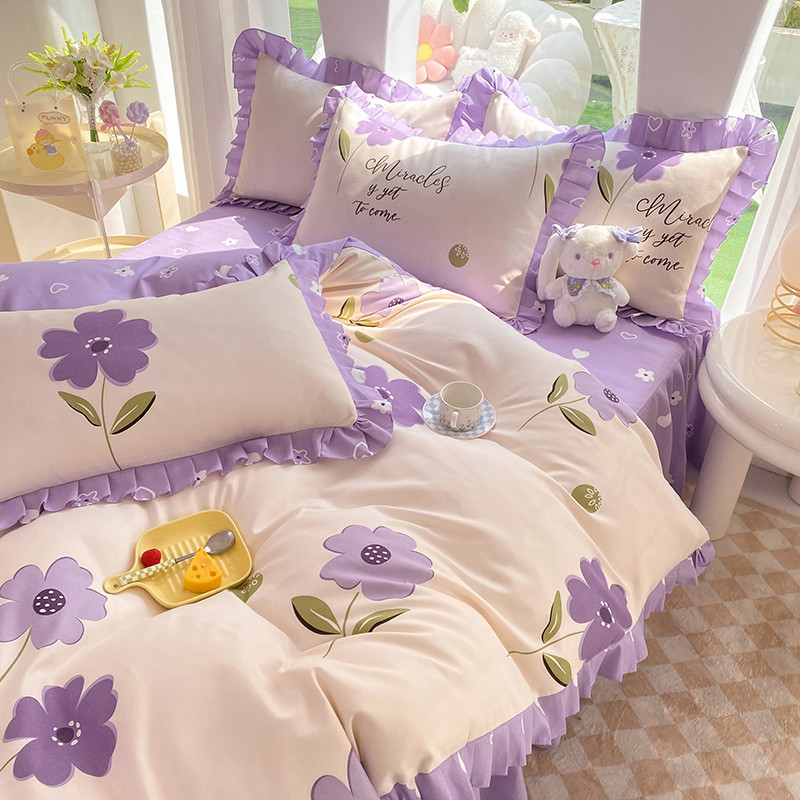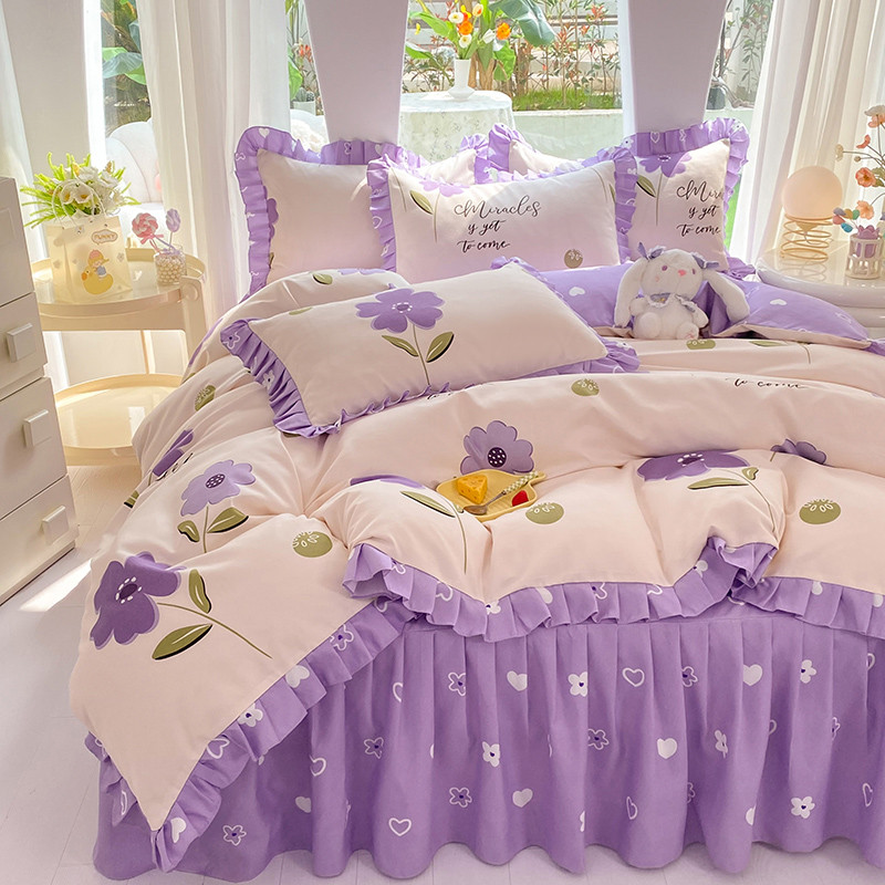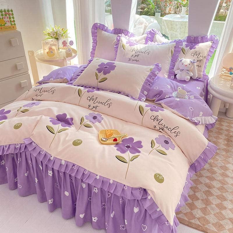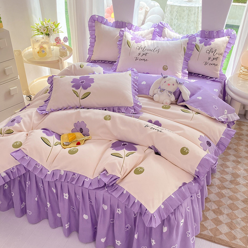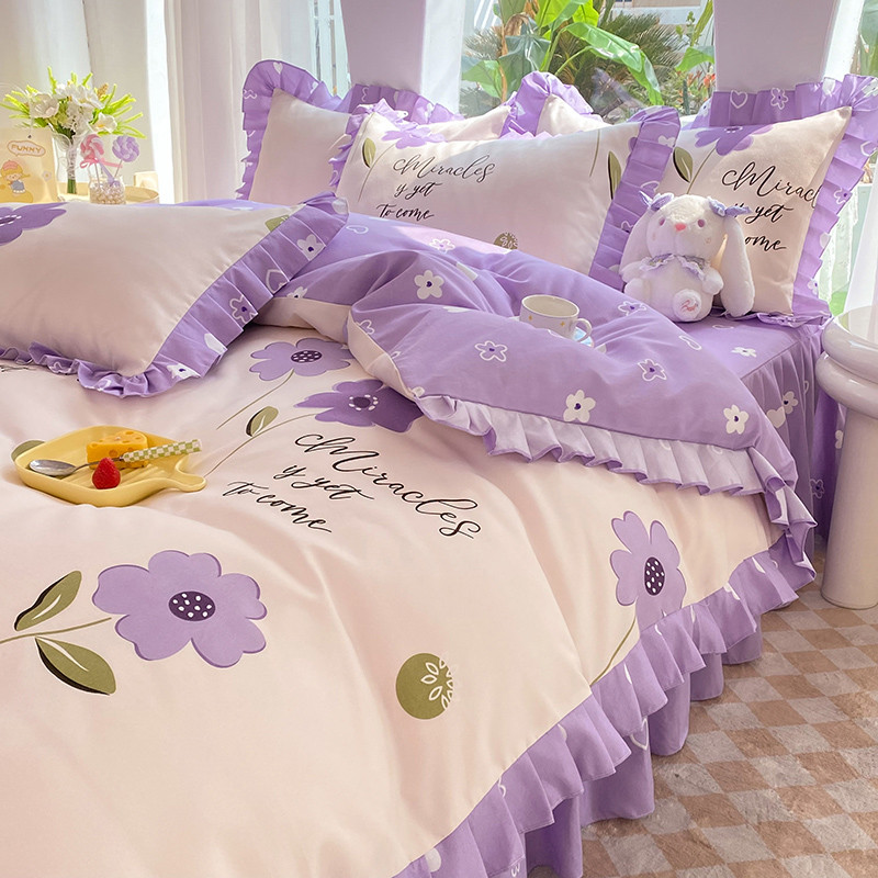优逸2025韩版公主风床裙款床单款四件套迷迭香
