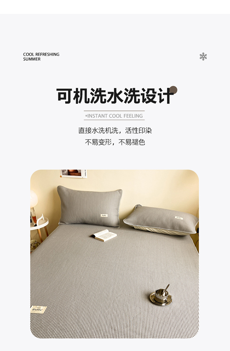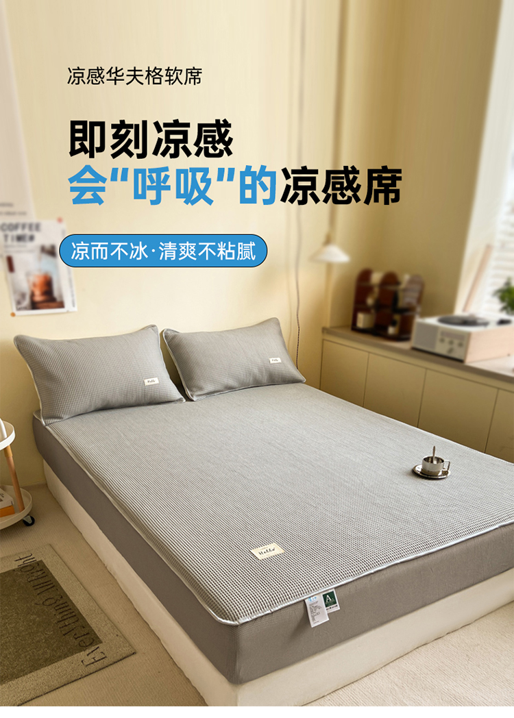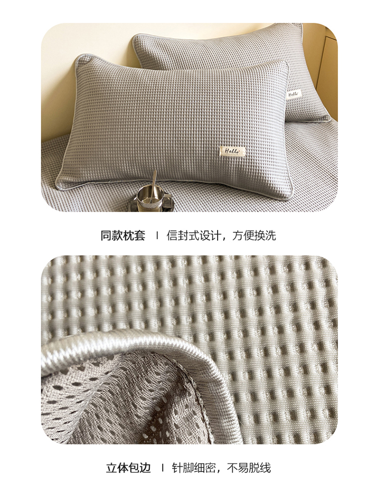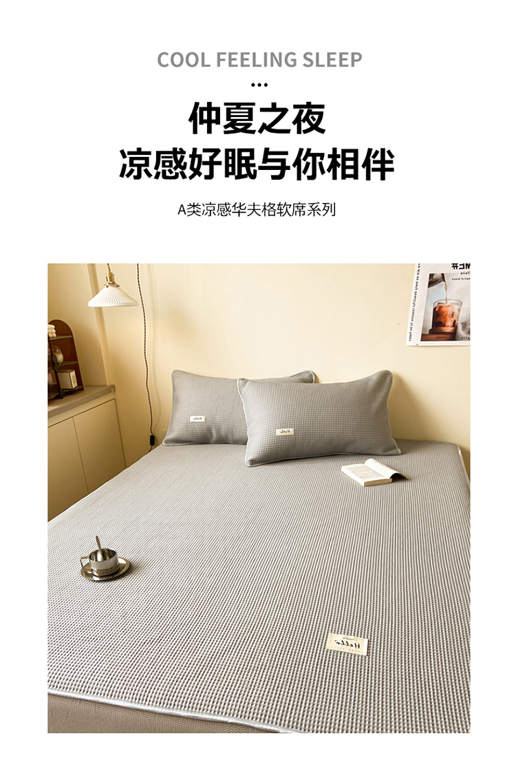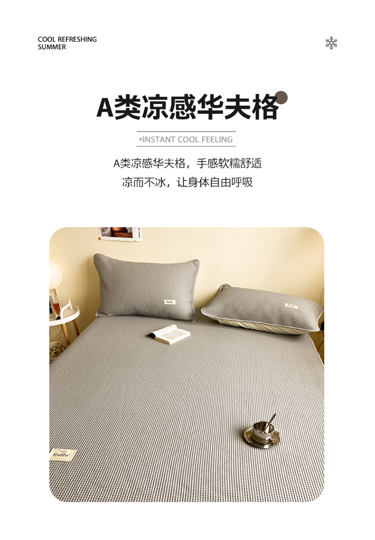 商品名称:吉象家纺 2023新款A类华夫格软席凉感席套件 华夫格高级灰