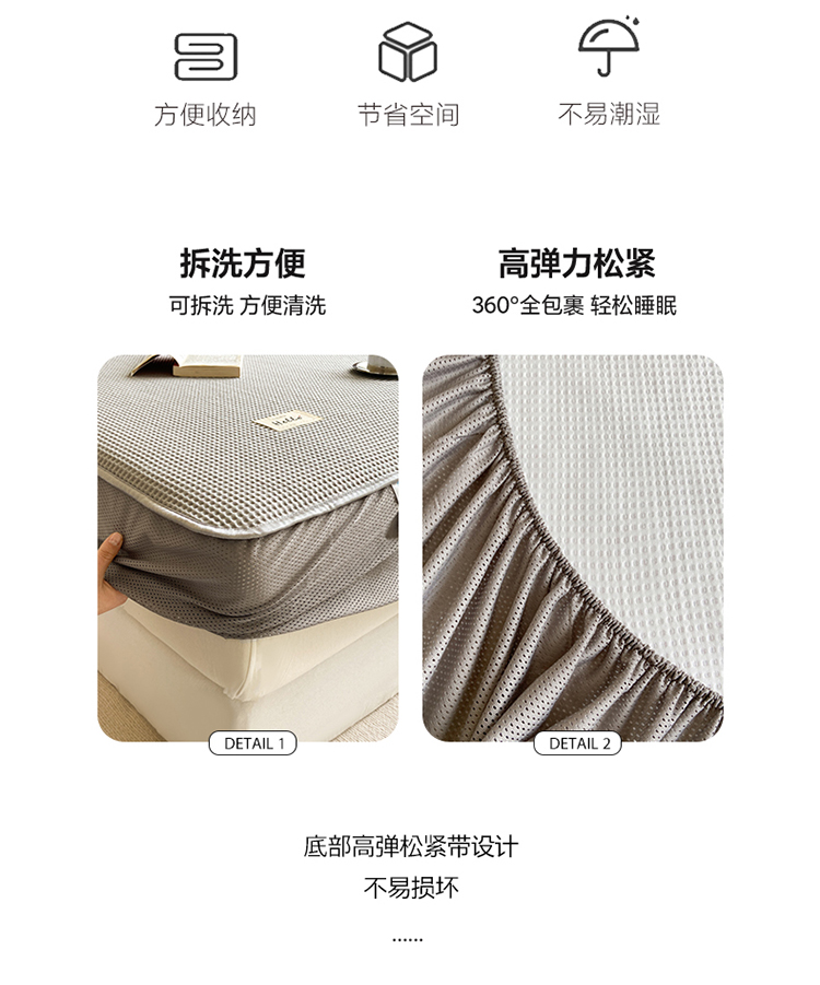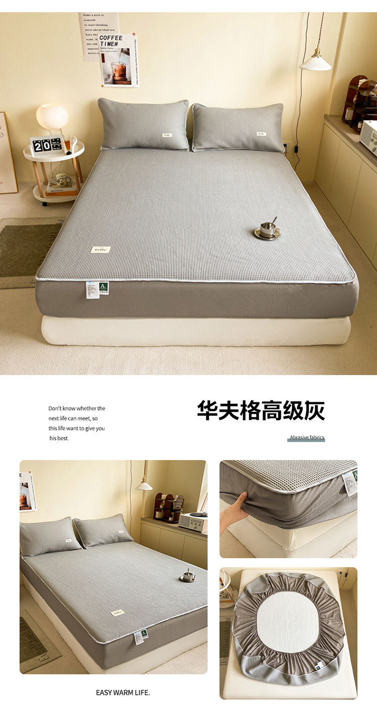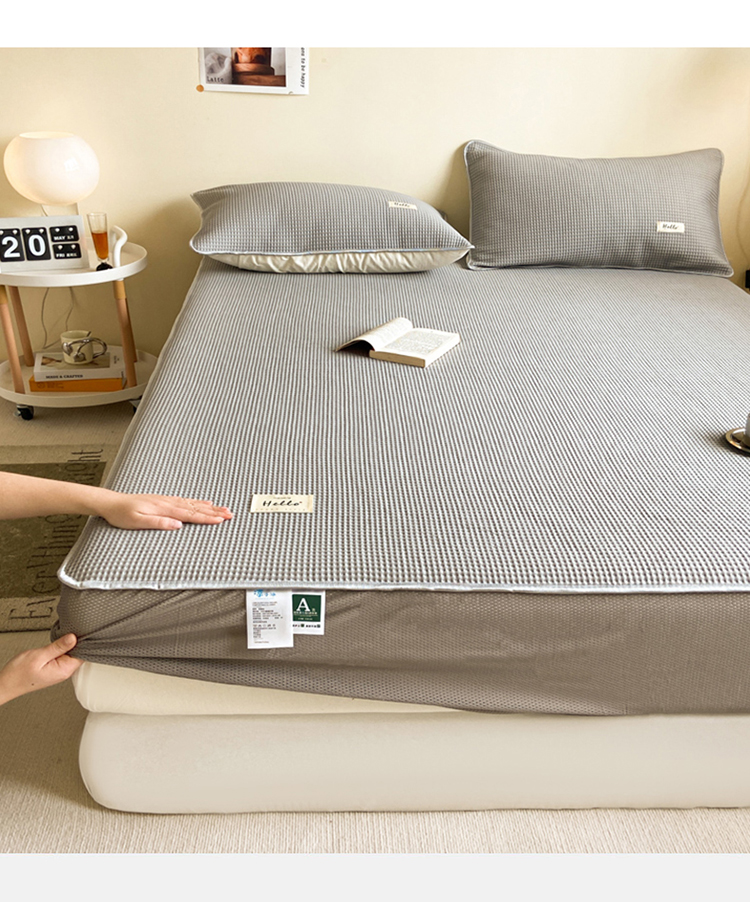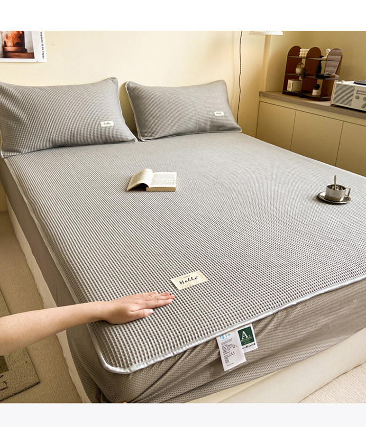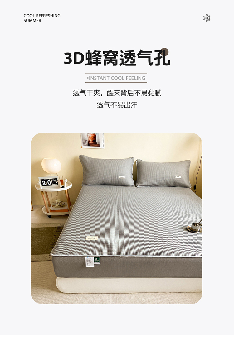 商品名称:吉象家纺 2023新款A类华夫格软席凉感席套件 华夫格高级灰