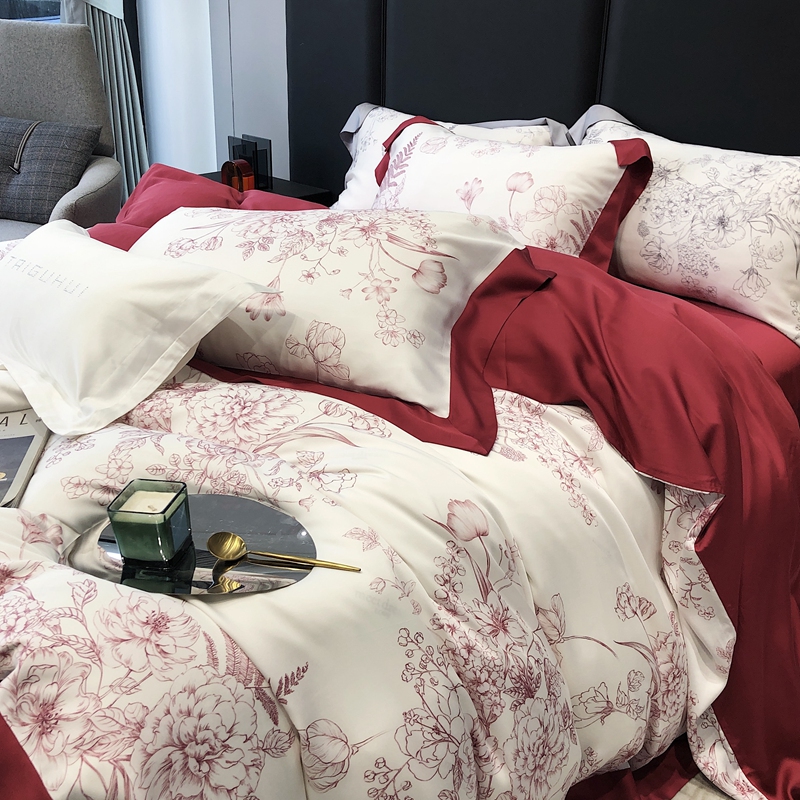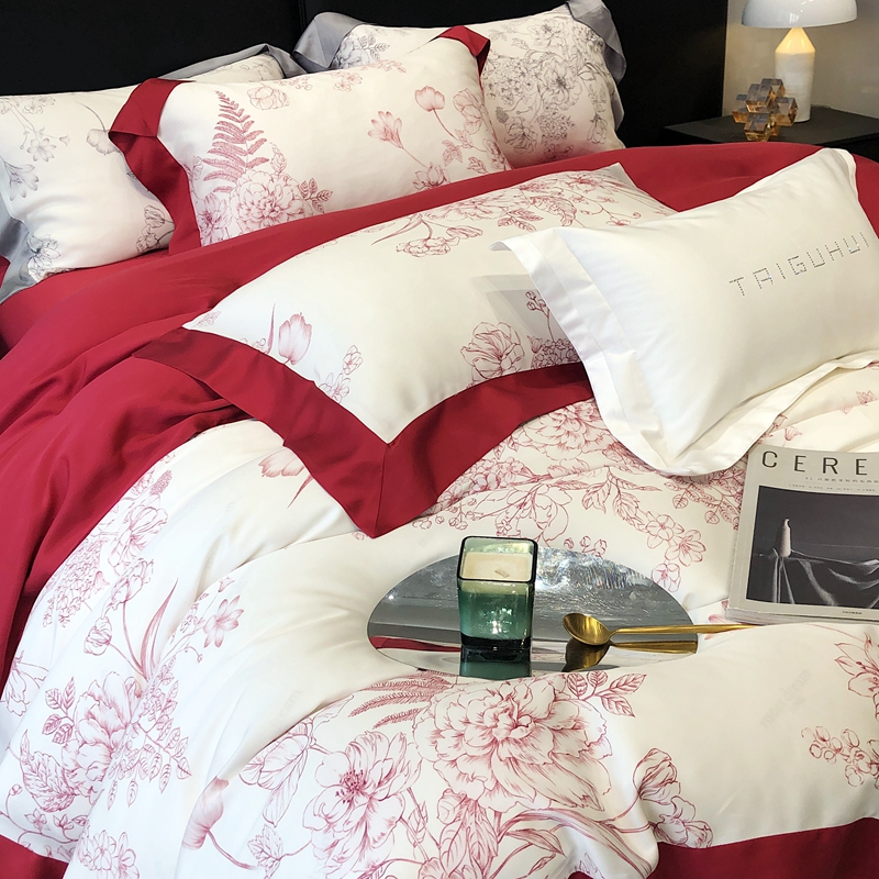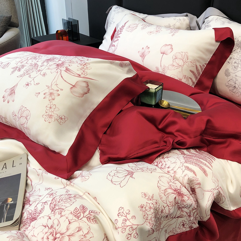 商品名称:太古汇家居 2023年新款兰精天丝印花“乔纳森”系列四件套 乔纳森-红色