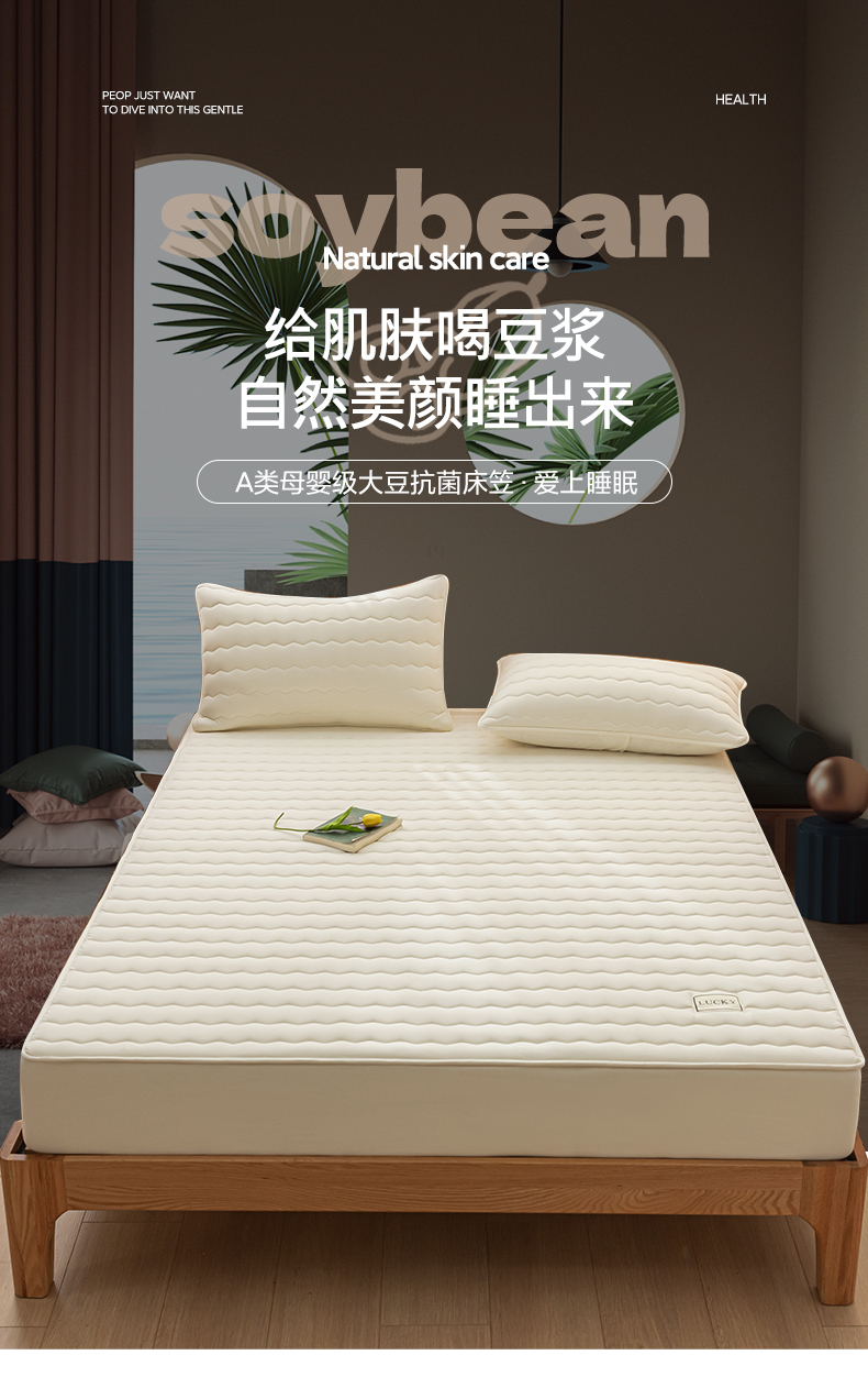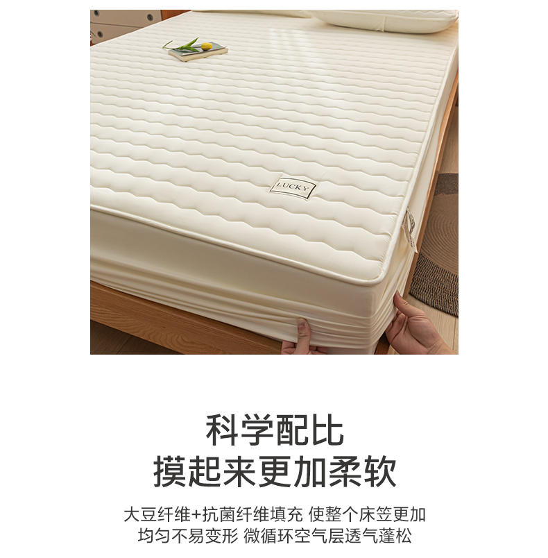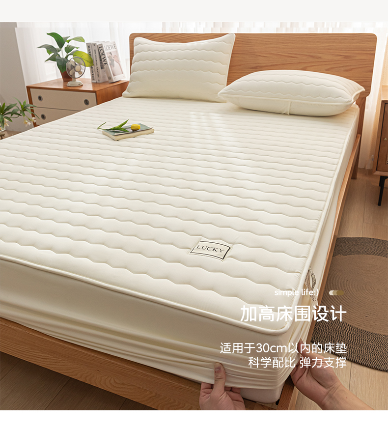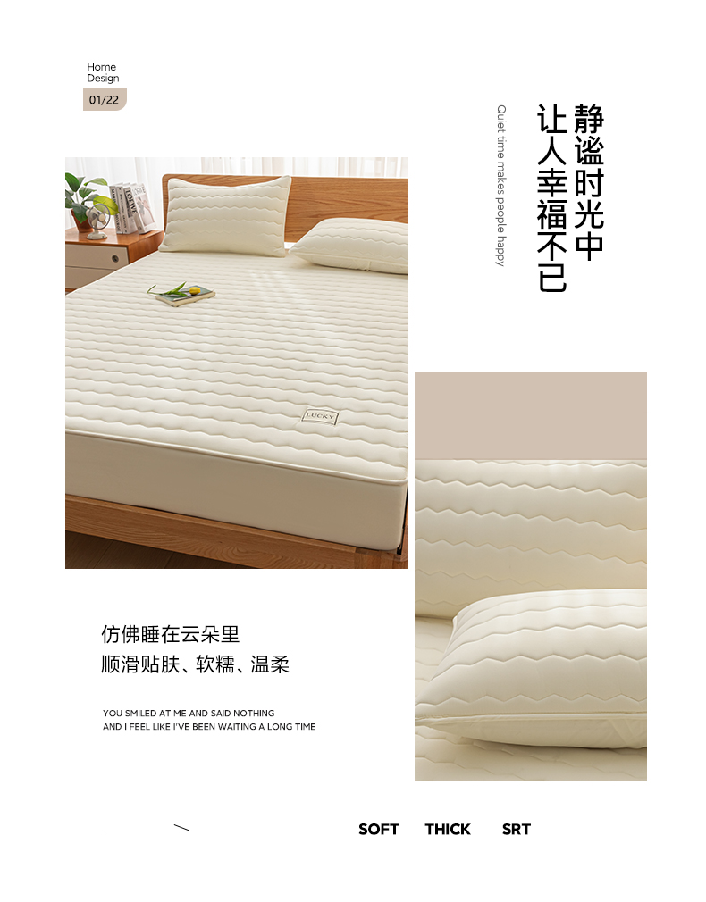 芬晴 2023新款A类母婴级大豆抗菌床笠 波浪-米白