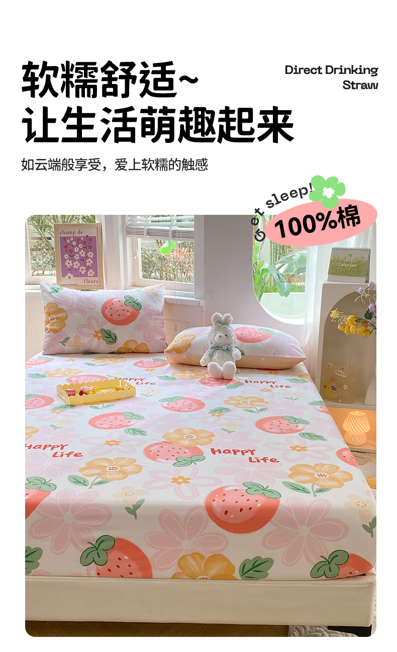 多品 2023年13070单品床笠【可搭配枕套一起卖】 草莓圣代