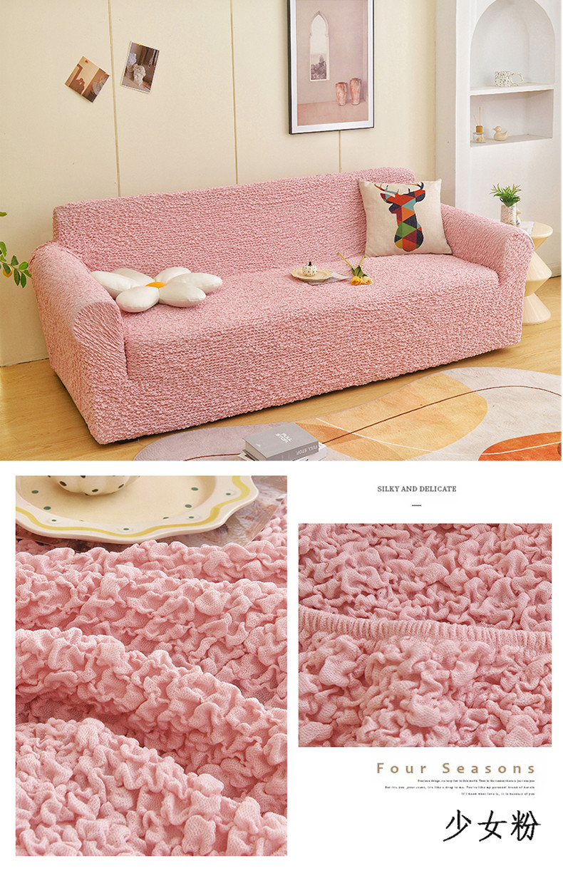 启博家纺 2023新款奶油云纱全包沙发套 少女粉