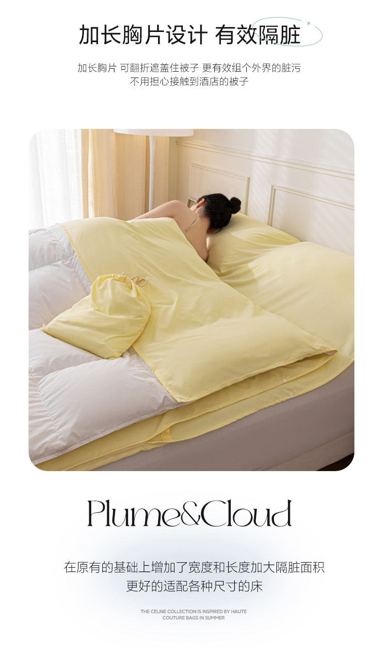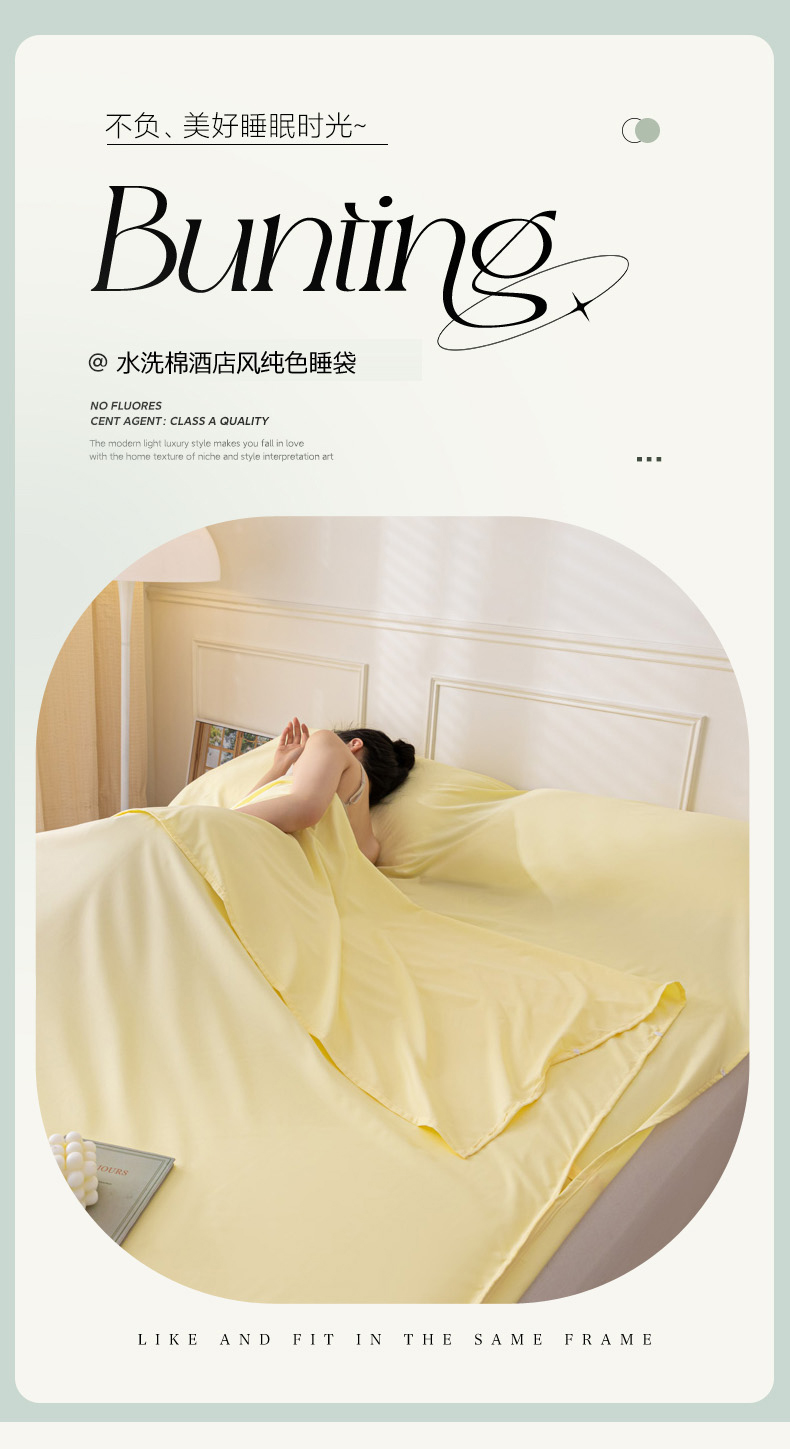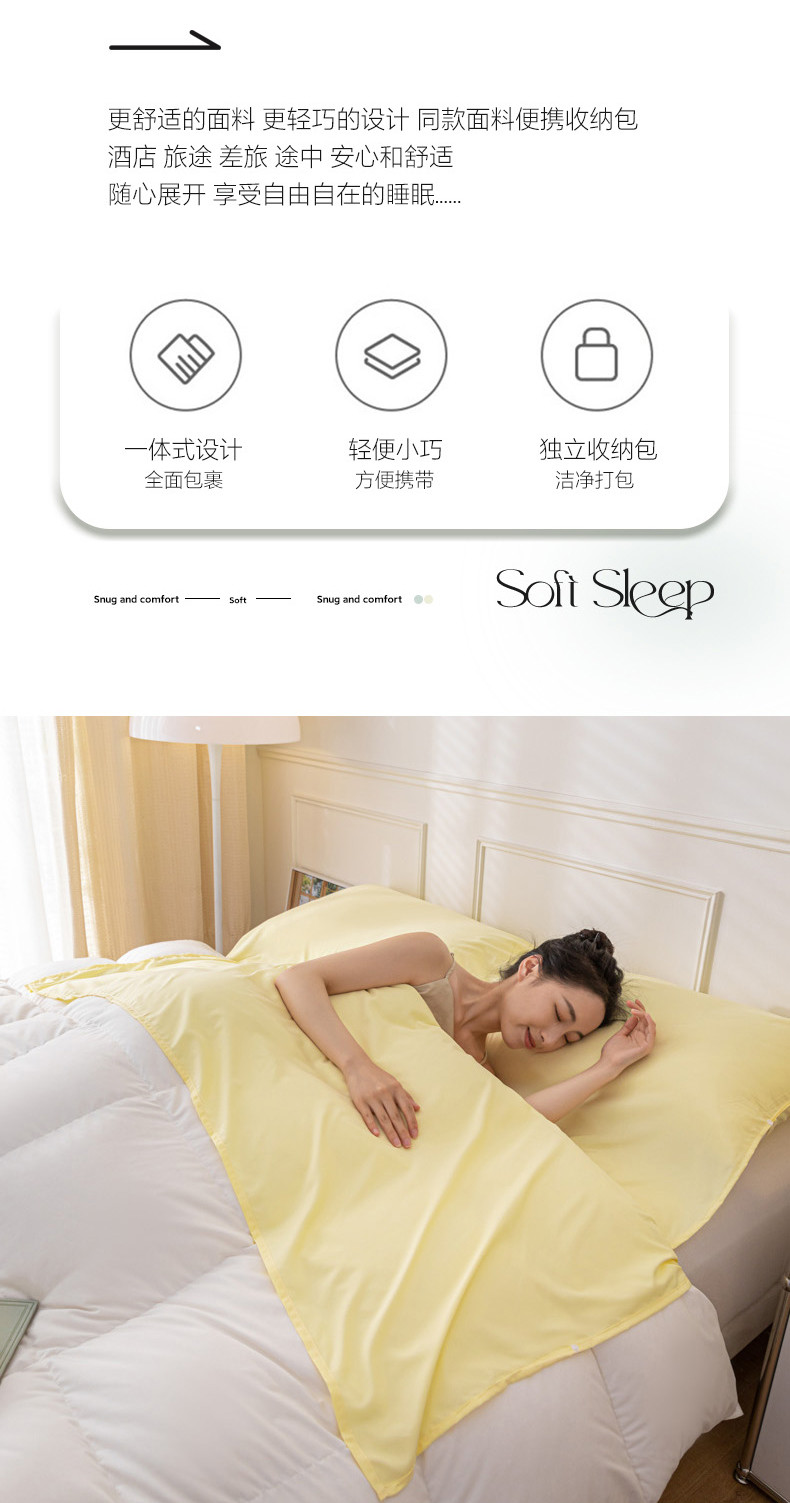 商品名称:慕澄2023新款水洗棉纯色酒店隔脏旅行睡袋 睡袋-星空黄