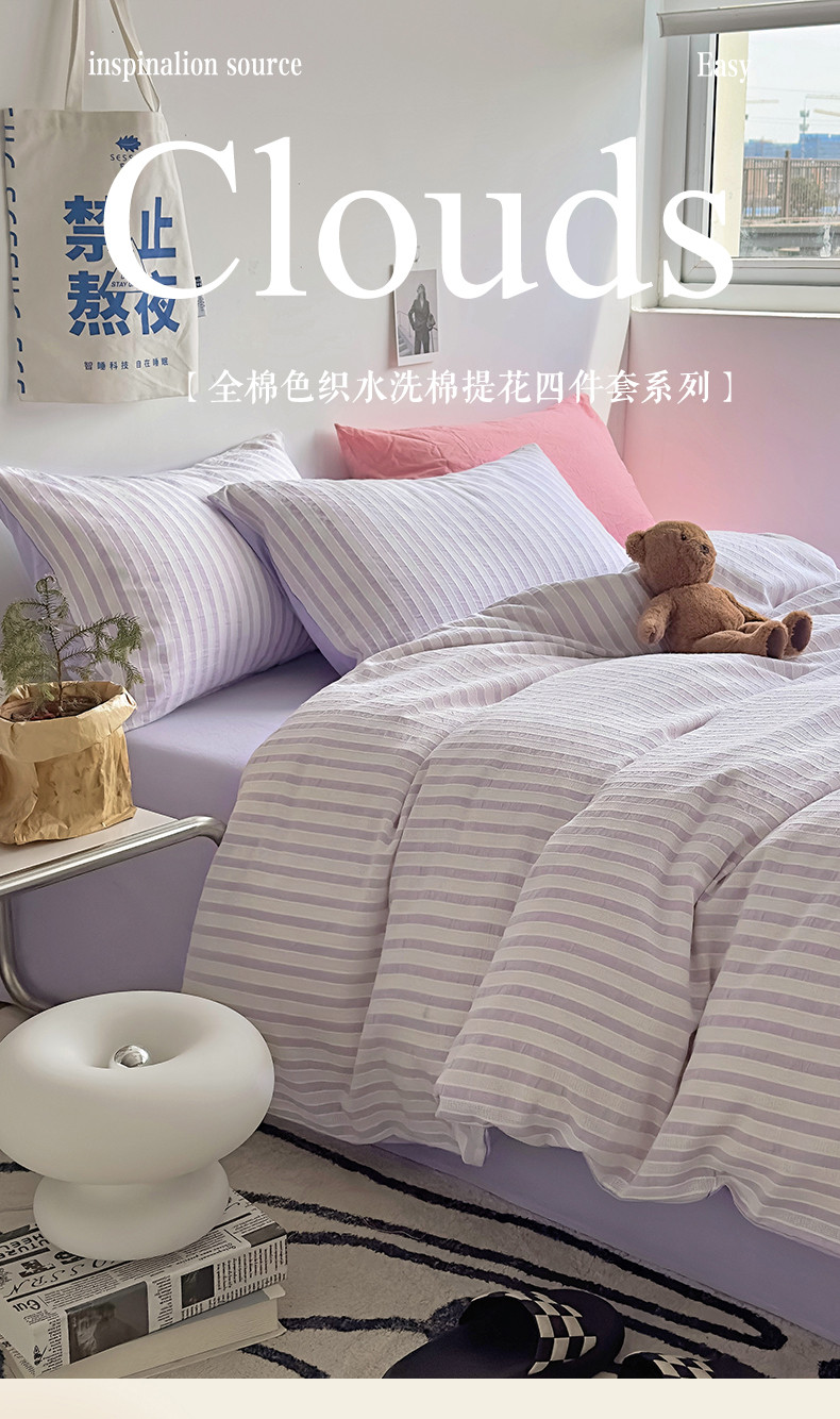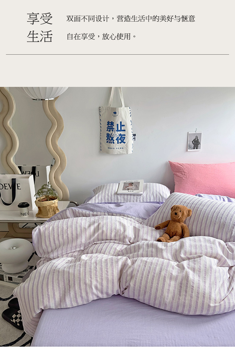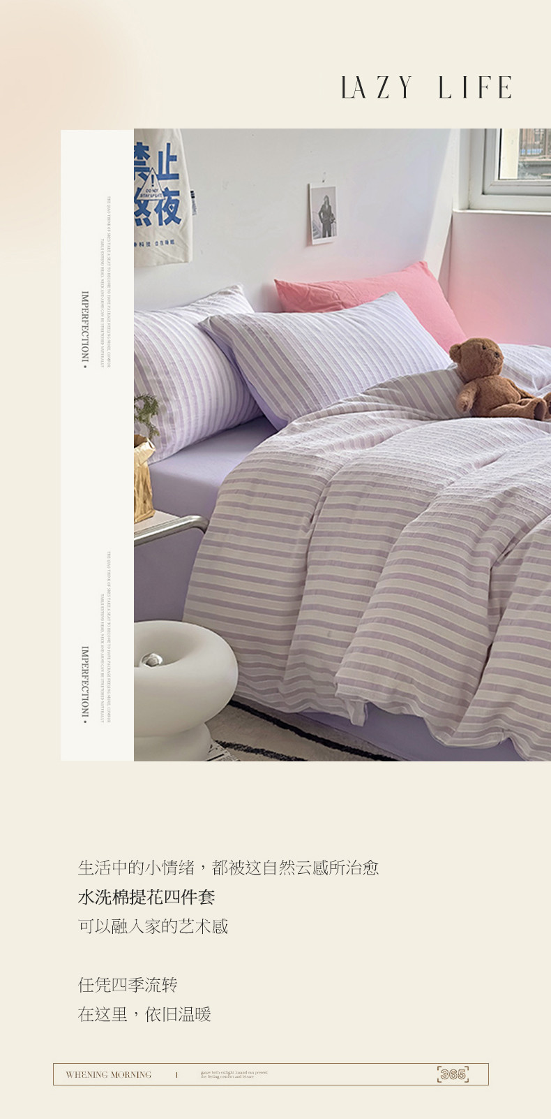 绫韵家纺 2023新款提花条纹全棉色织水洗棉系列四件套 提花-紫条