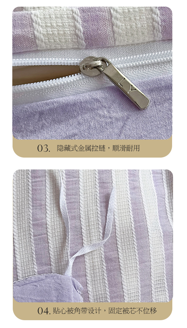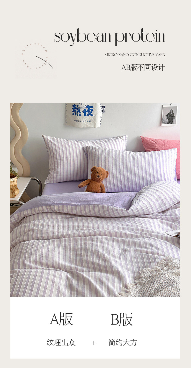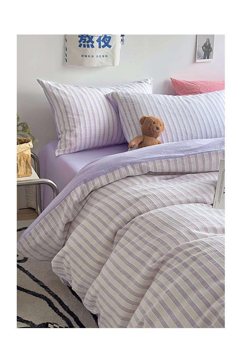 绫韵家纺 2023新款提花条纹全棉色织水洗棉系列四件套 提花-紫条