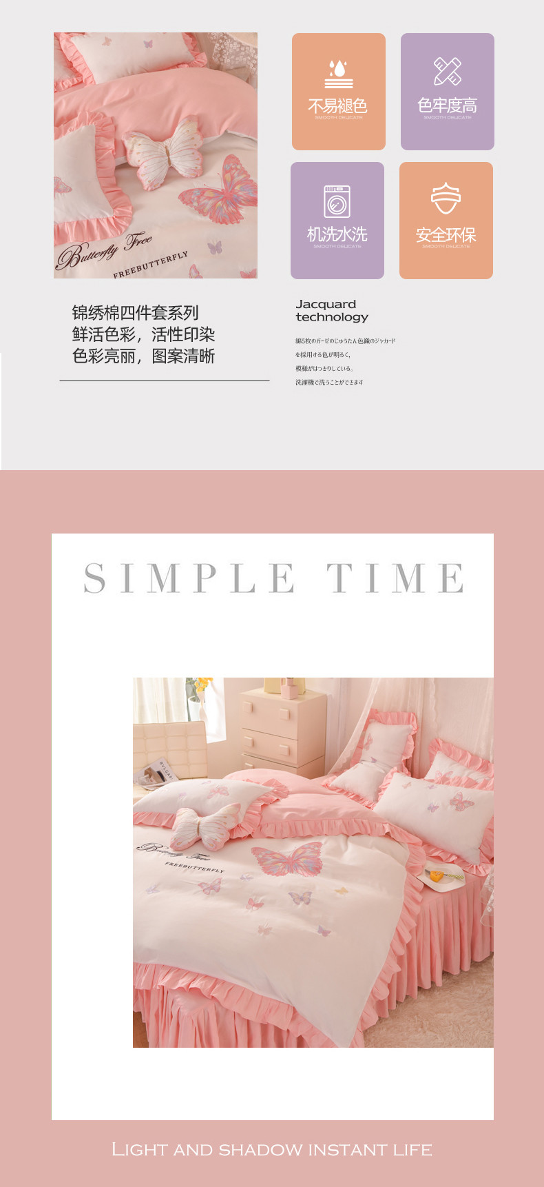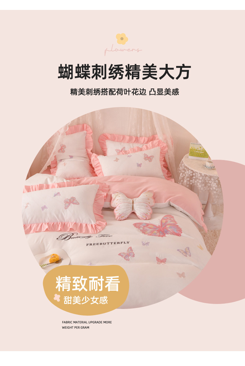 当前位置: 91家纺网 > 商品网购 > 床品套件 > 四件套 > 全棉普通四件套 > 丝印良品 2023新款云锦棉刺绣花边羽蝶系列四件套 羽蝶-白玉