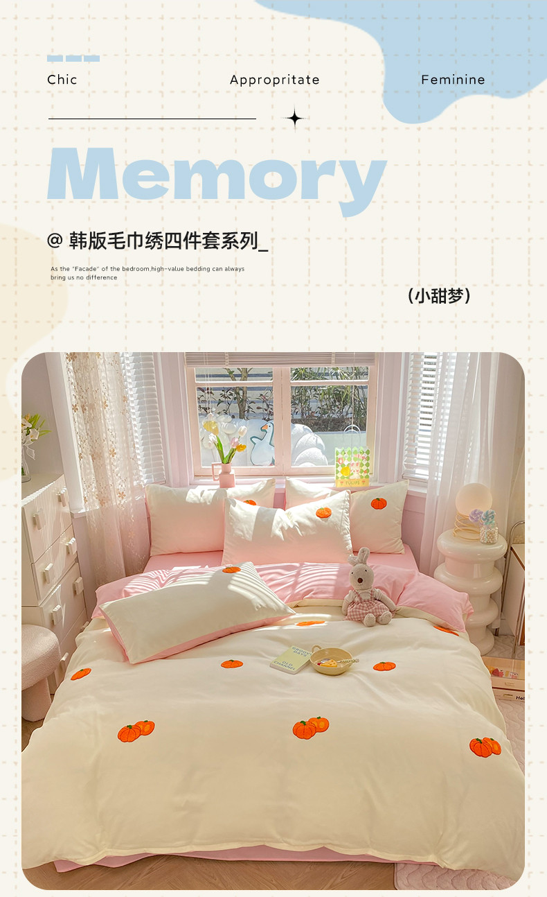 商品名称:丝印良品 2023新款专版水洗棉麻毛巾绣四件套 南瓜派