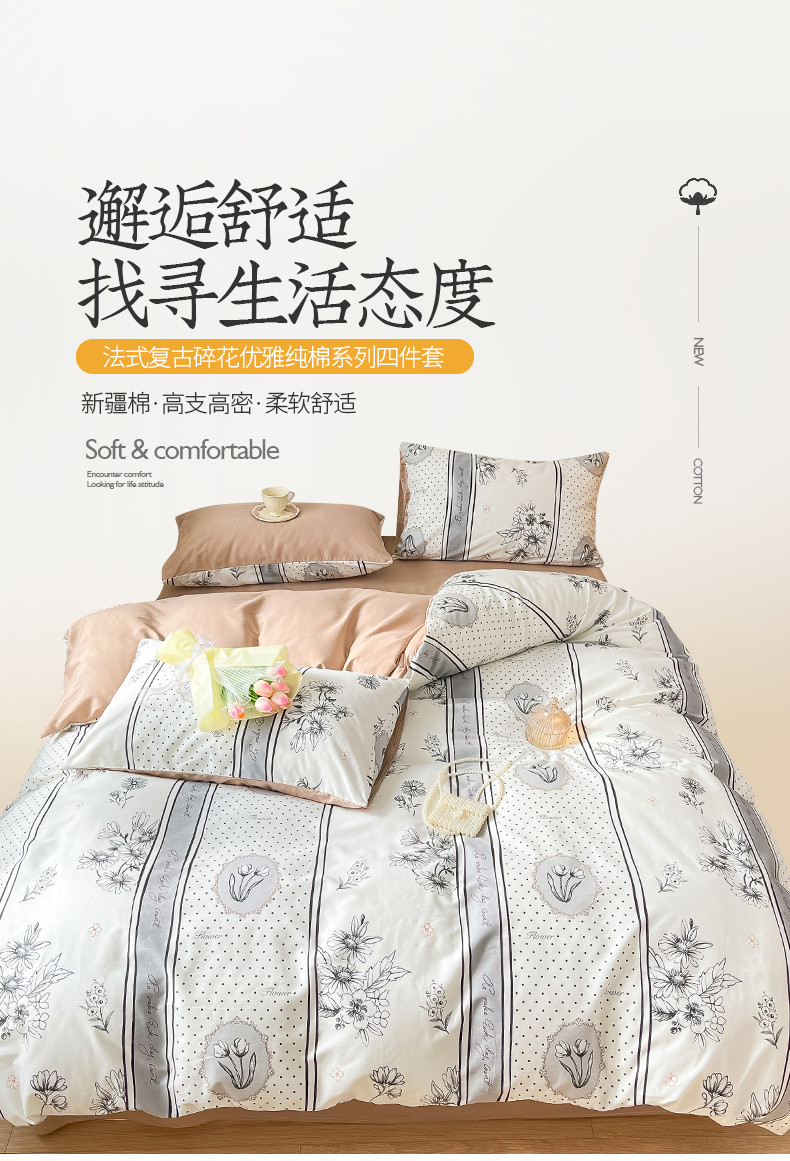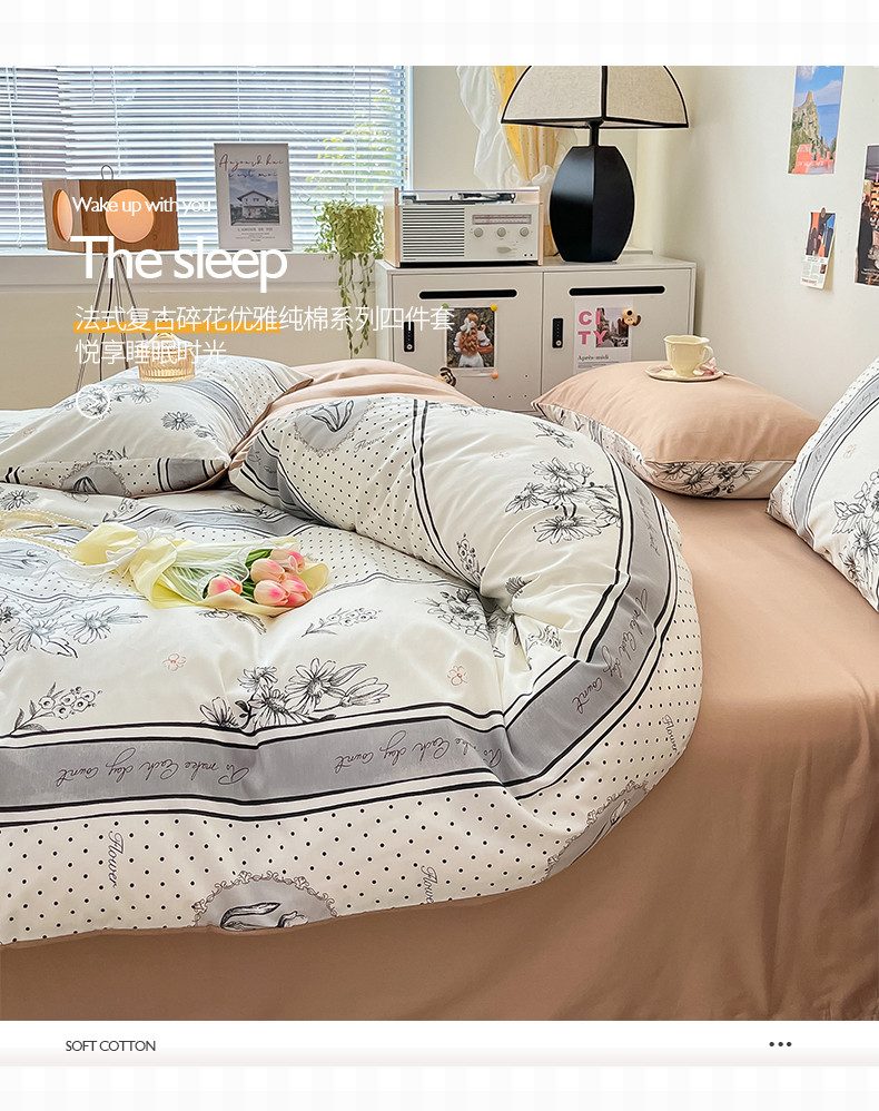桃子 2023新款法式复古碎花优雅纯棉系列四件套-场景一 棉-黛佳