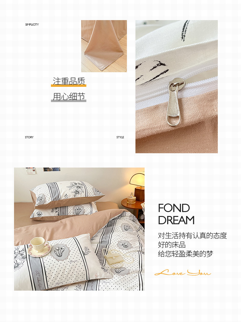 商品名称:桃子 2023新款法式复古碎花优雅纯棉系列四件套-场景一 棉-黛佳