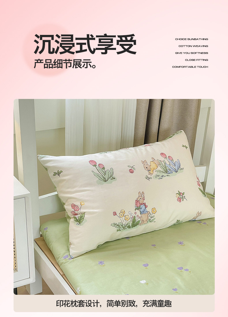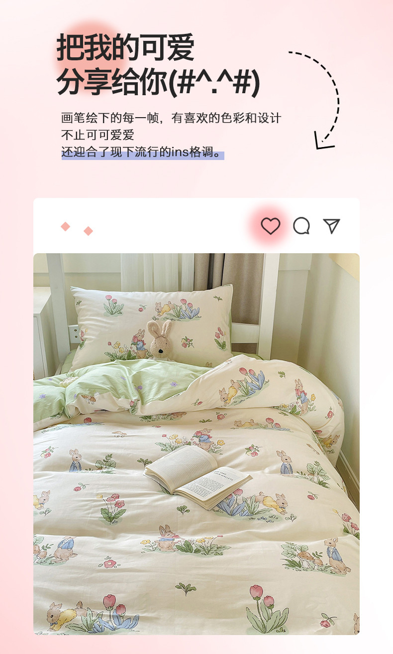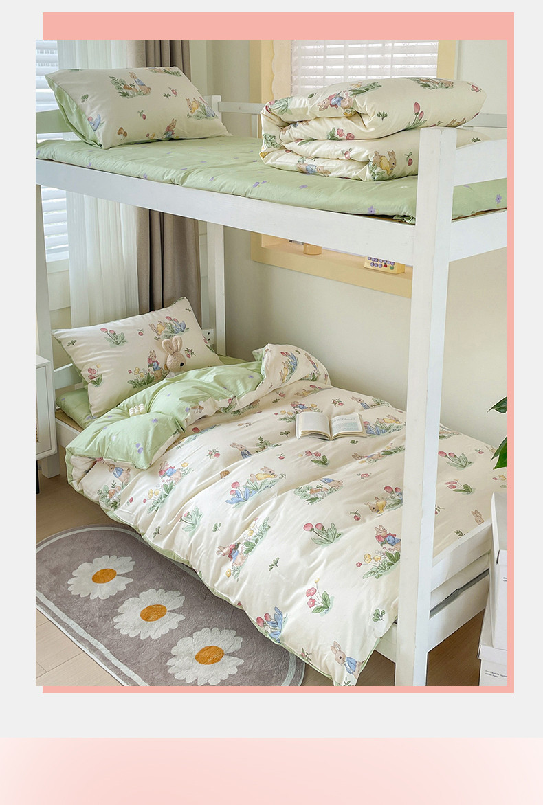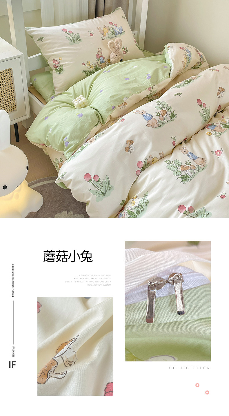 当前位置: 91家纺网 > 商品网购 > 床品套件 > 三件套 > 名兮家居 2023新款全棉印花学生三件套 蘑菇小兔