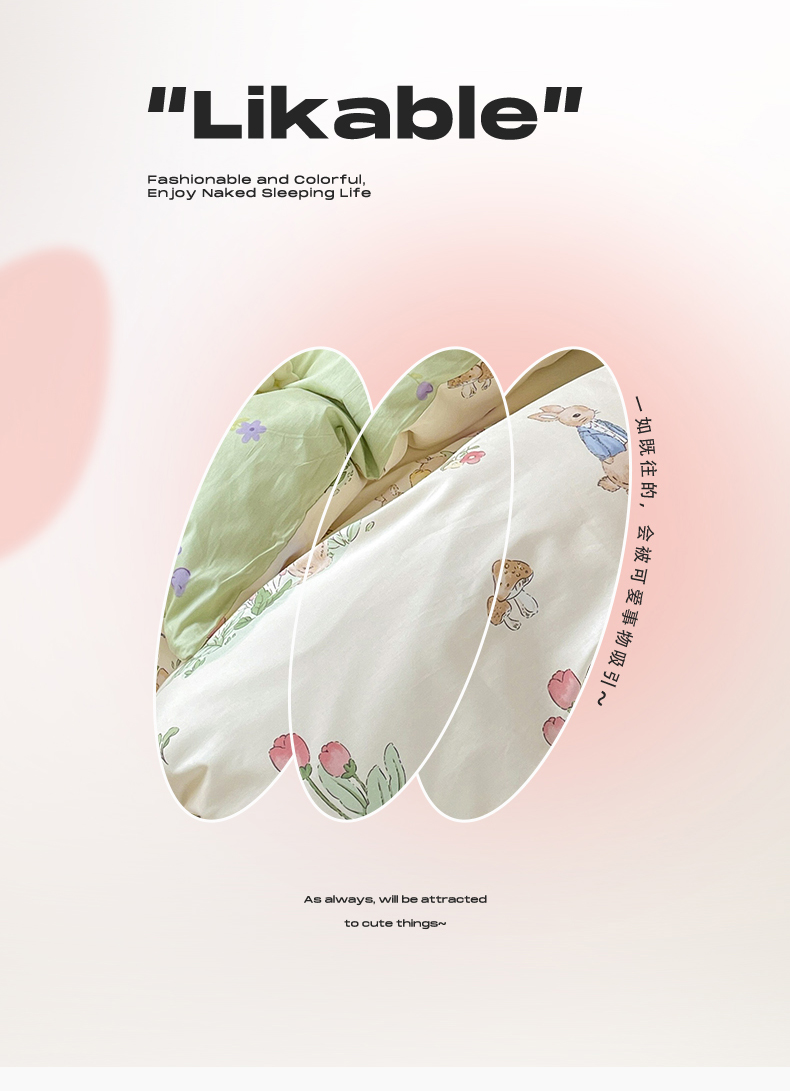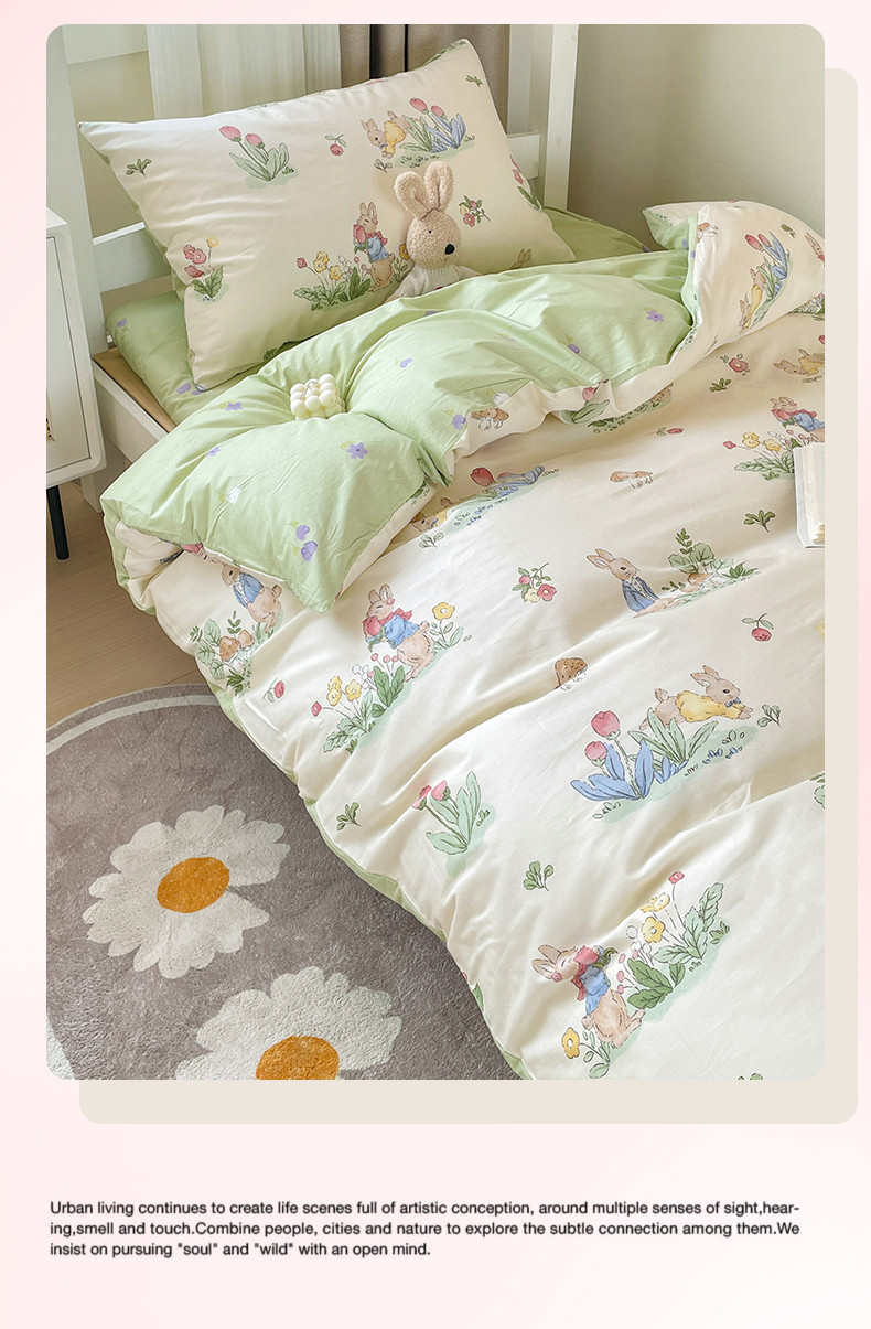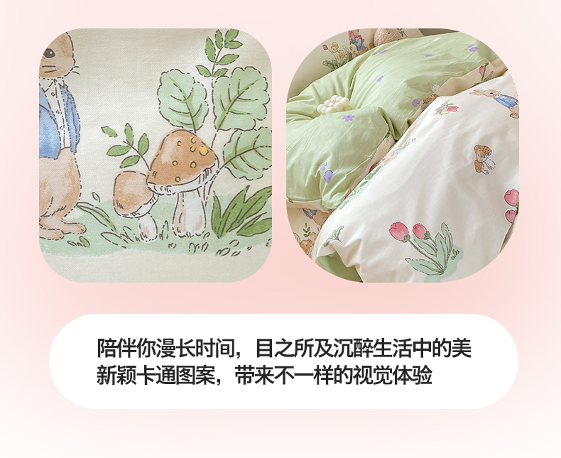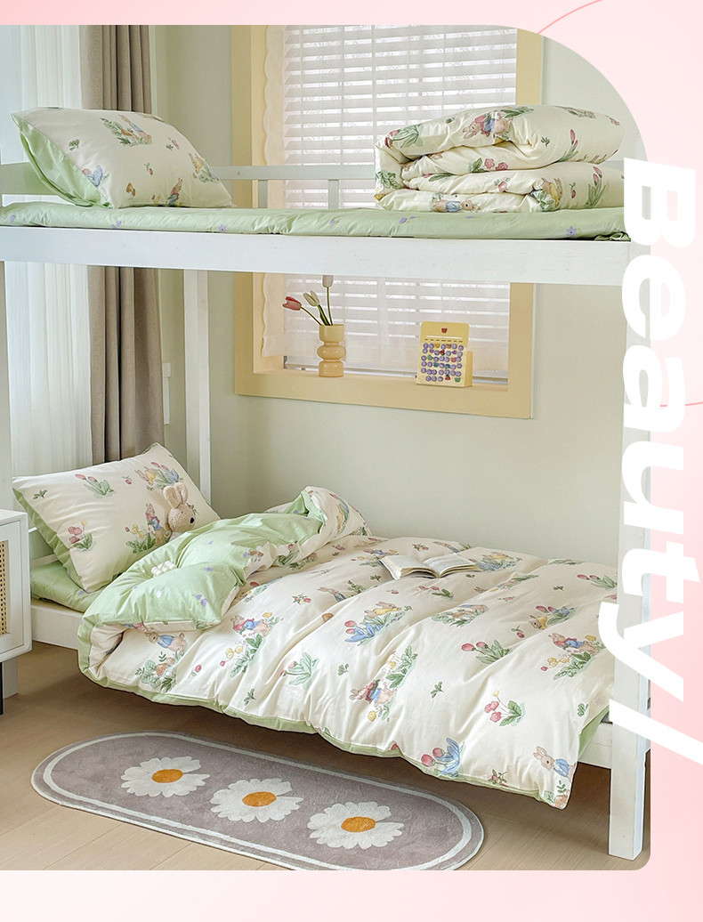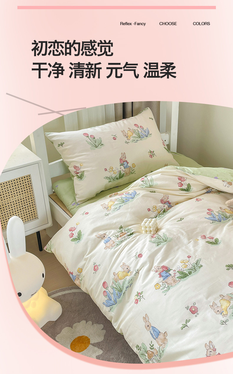 当前位置: 91家纺网 > 商品网购 > 床品套件 > 三件套 > 名兮家居 2023新款全棉印花学生三件套 蘑菇小兔
