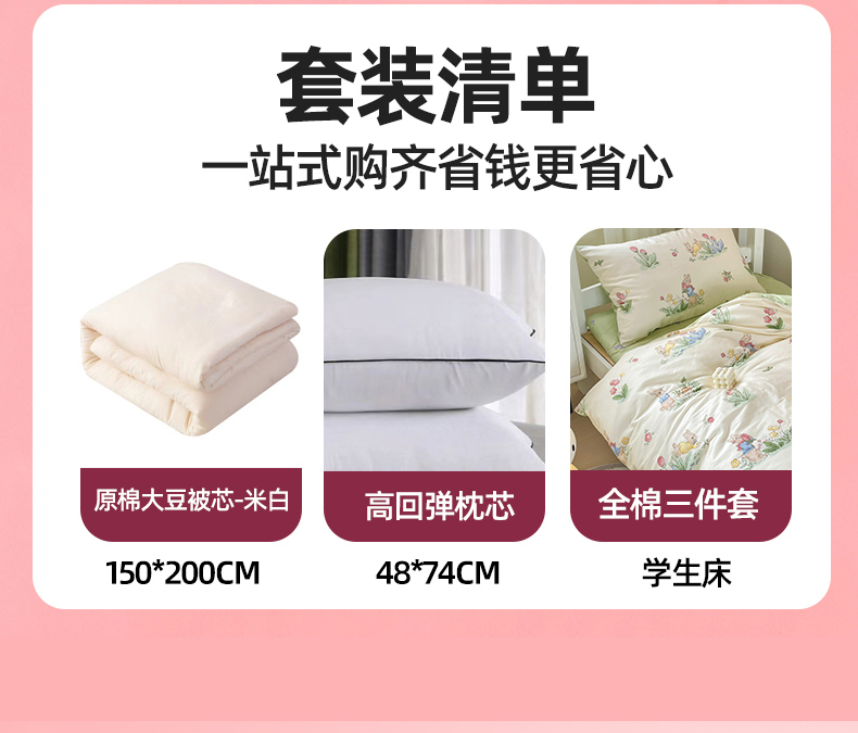学生床五件套 【三件套+枕芯+春秋被约3斤】 | ¥136.00 |