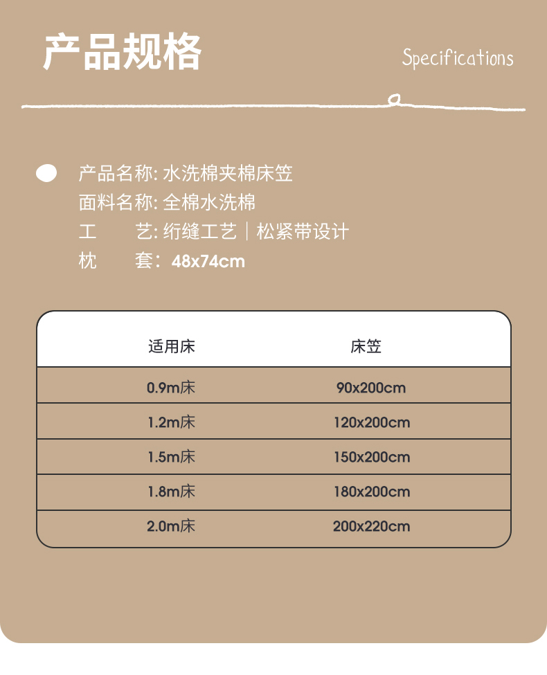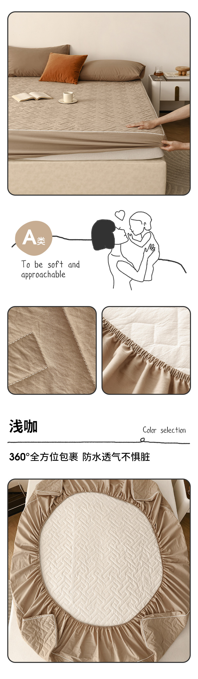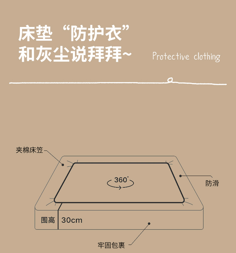 商品名称:万盛家纺 2023新款全棉40支水洗棉防水夹棉床笠 浅咖