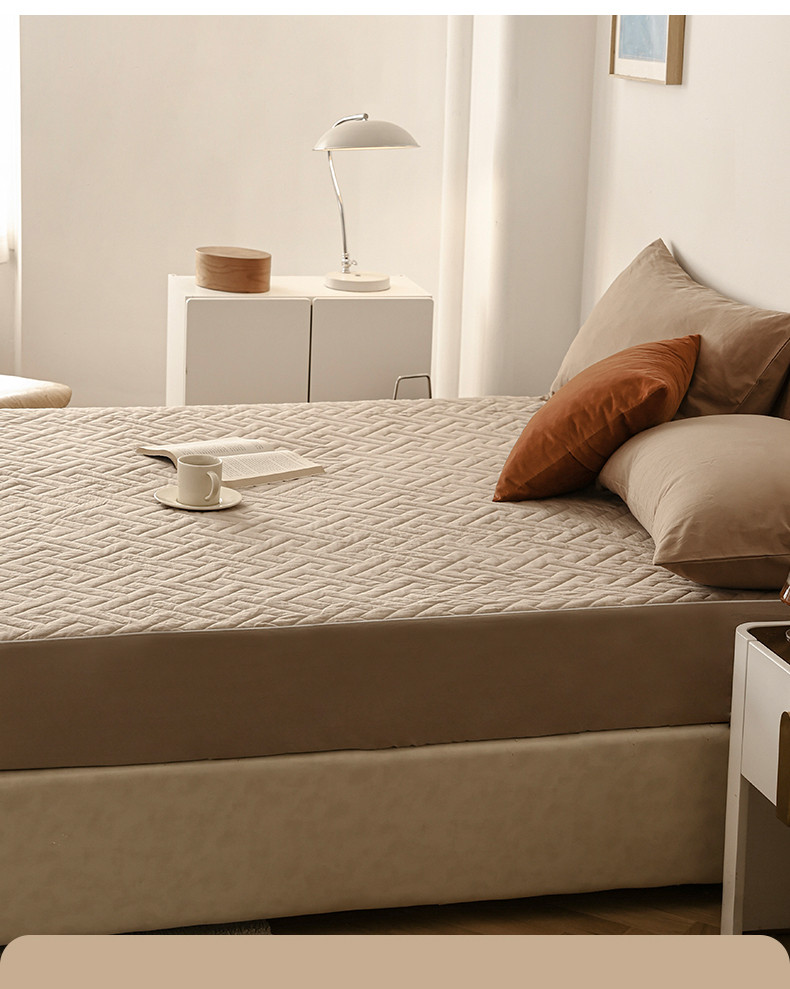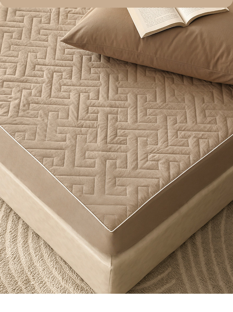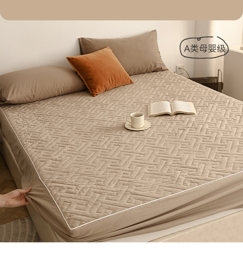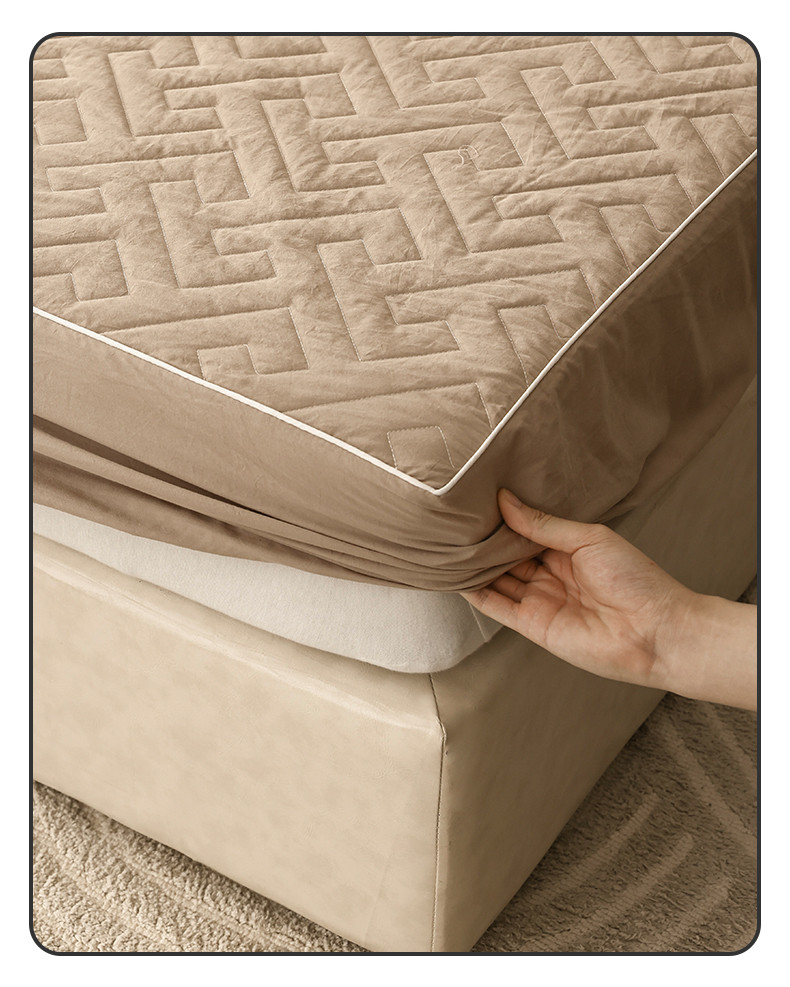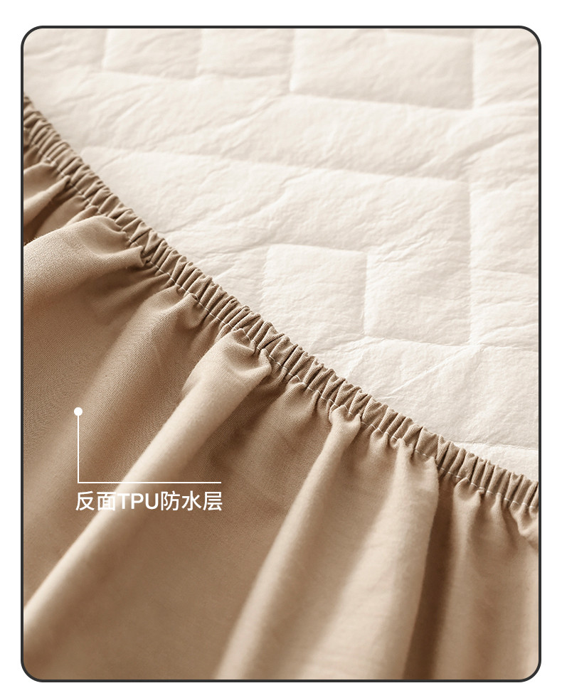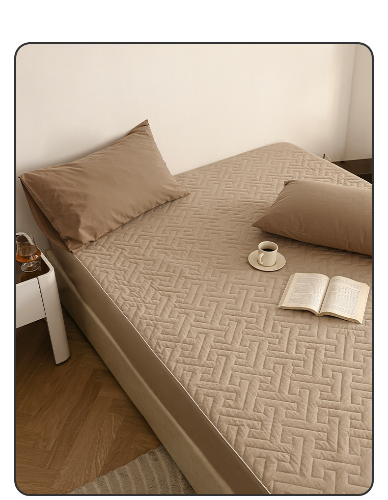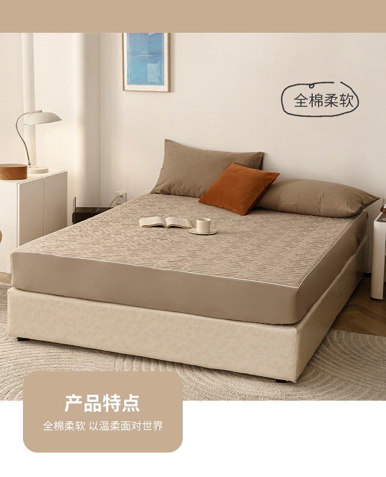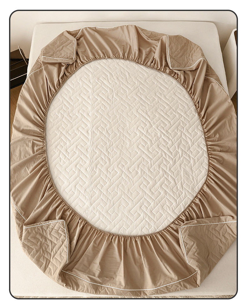 万盛家纺 2023新款全棉40支水洗棉防水夹棉床笠 浅咖
