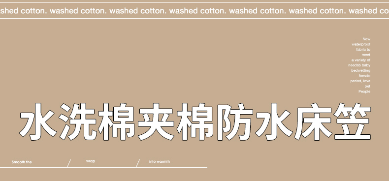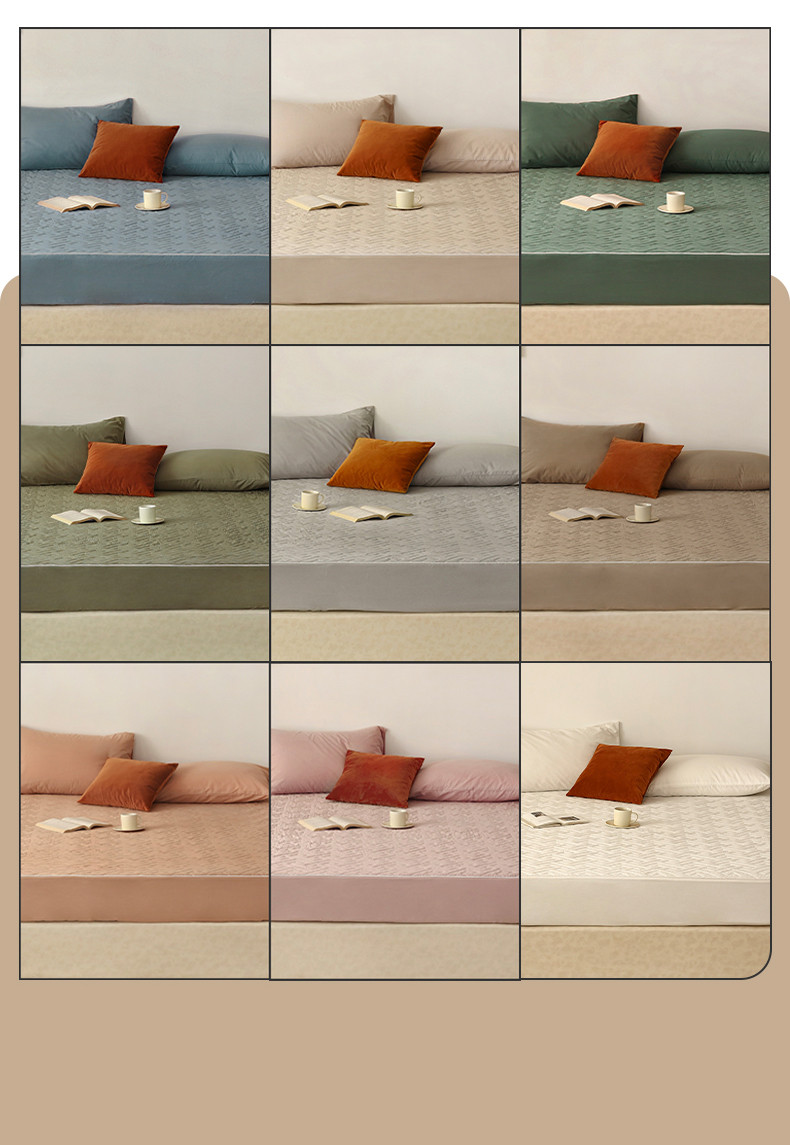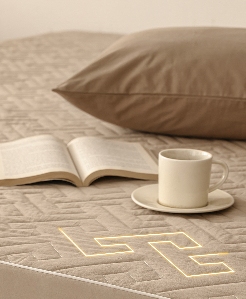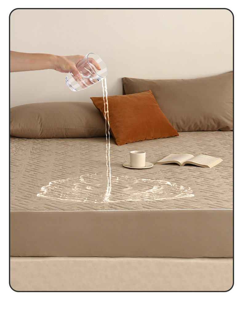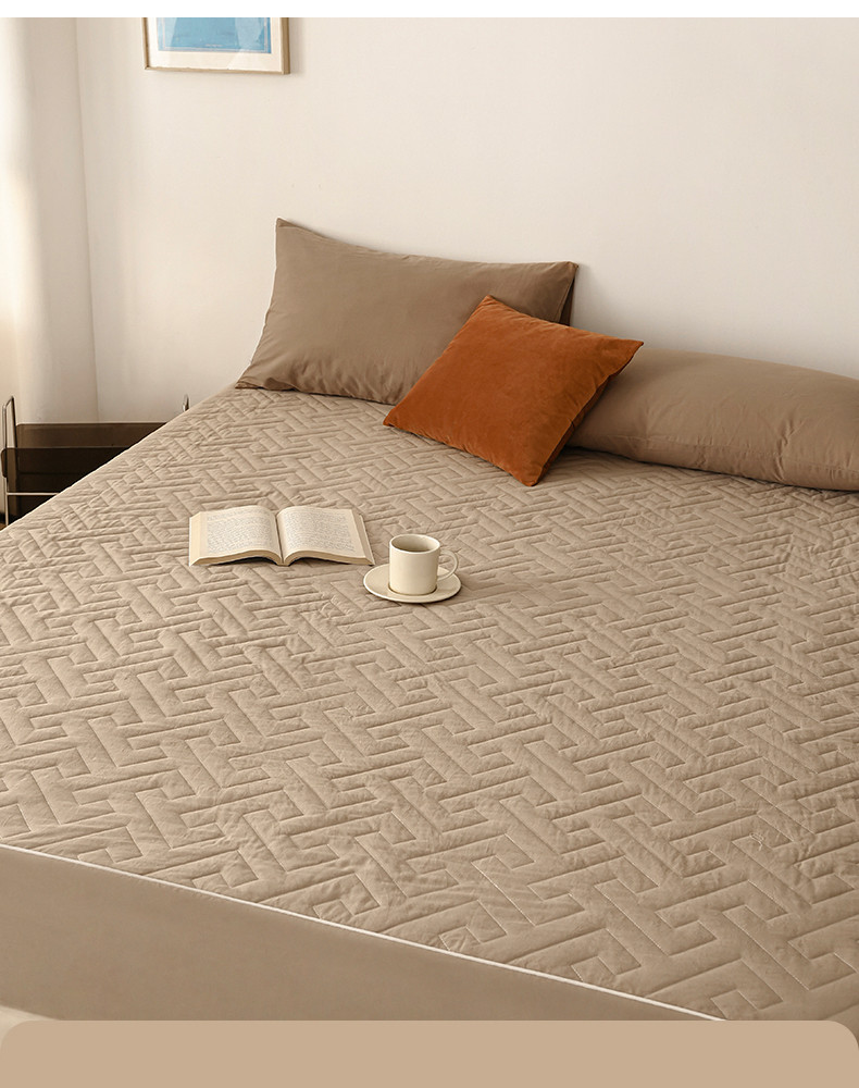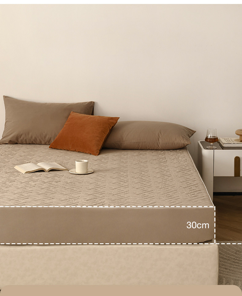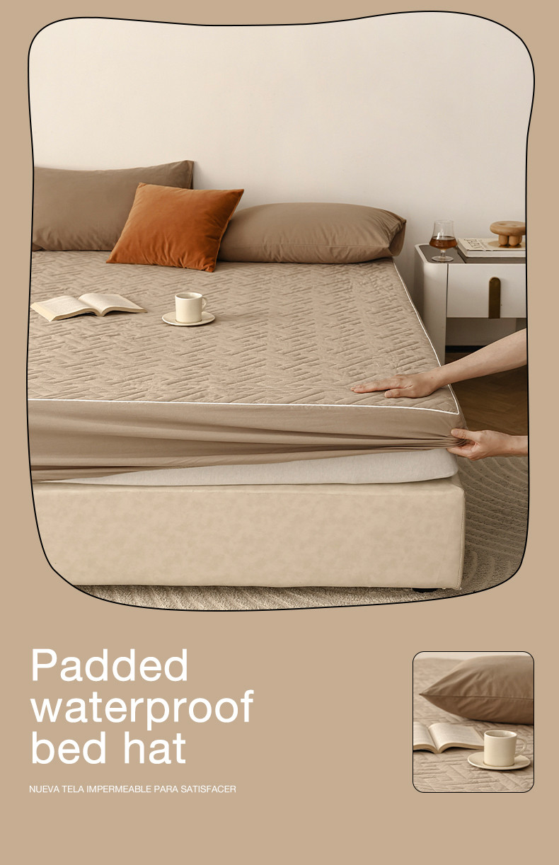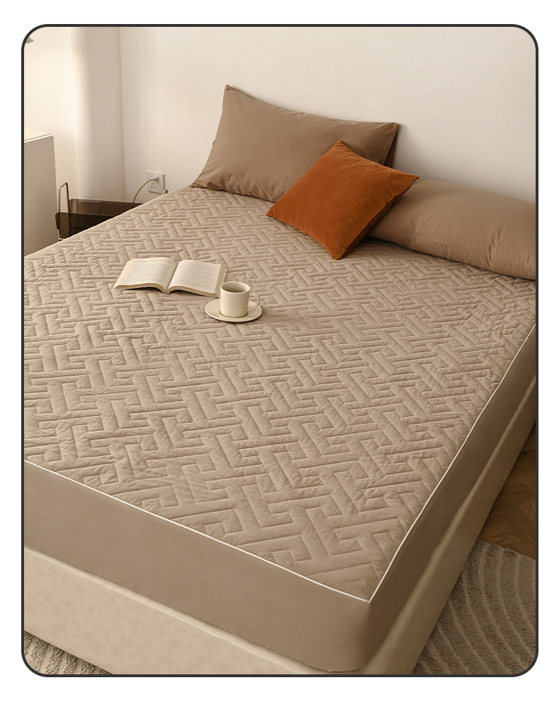 万盛家纺 2023新款全棉40支水洗棉防水夹棉床笠 浅咖