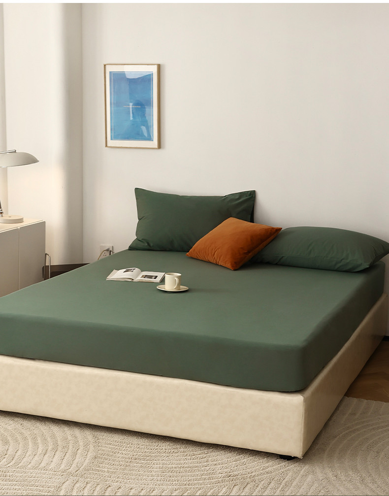 万盛 2023新款全棉40支水洗棉单层床笠 军绿
