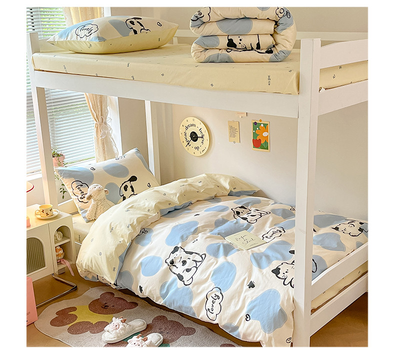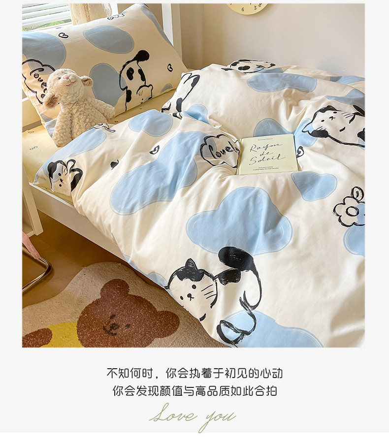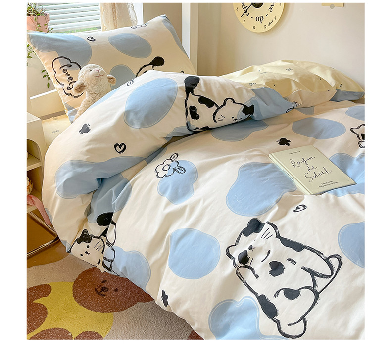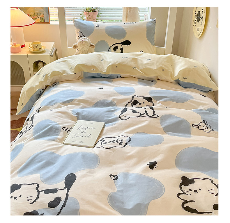 当前位置: 91家纺网 > 商品网购 > 床品套件 > 四件套 > 全棉普通四件套 > 麦伦 2023春夏全棉斜纹学生三件套四件套上下铺床品系列 奶牛猫