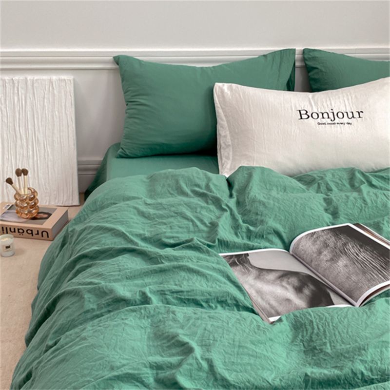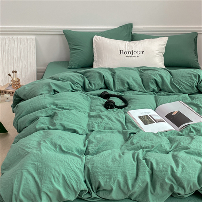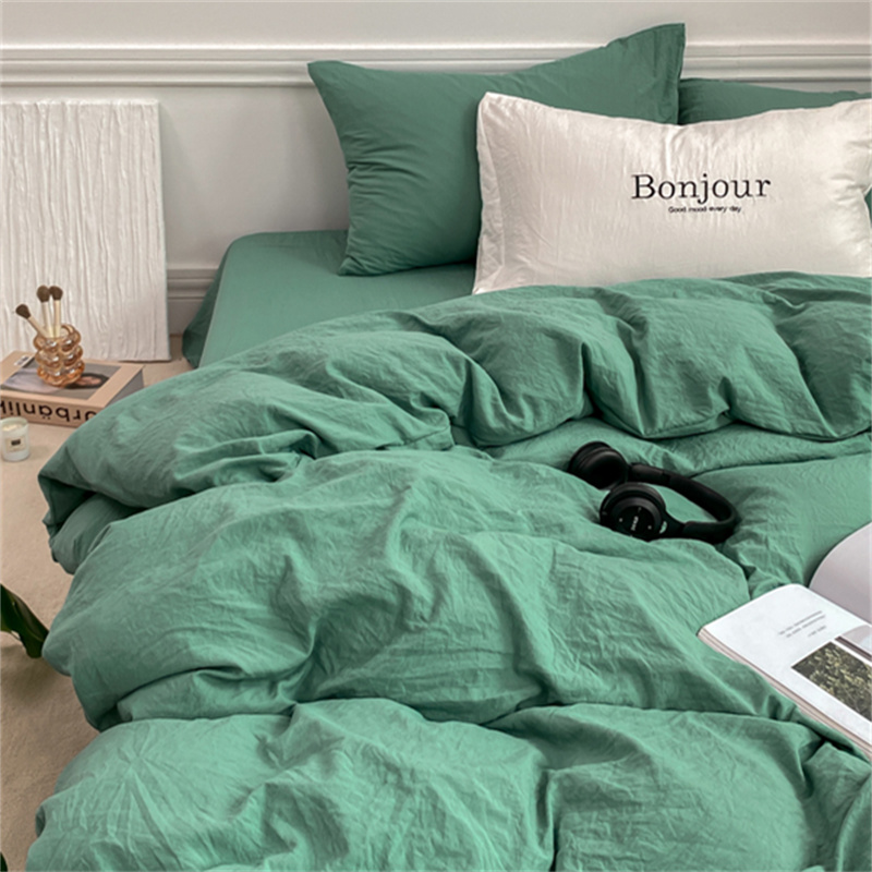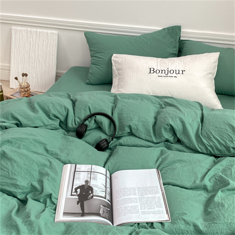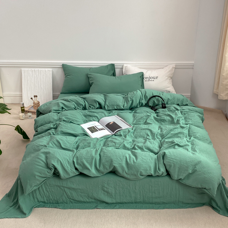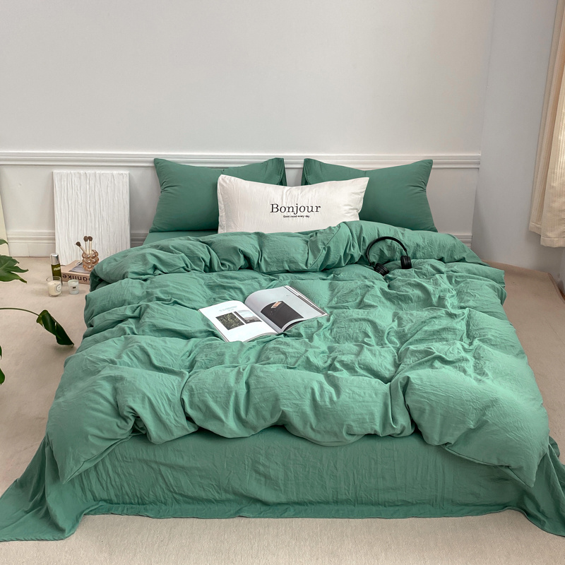 雨帆家纺 2023新款ins风超柔水洗棉四件套 ins湖水绿