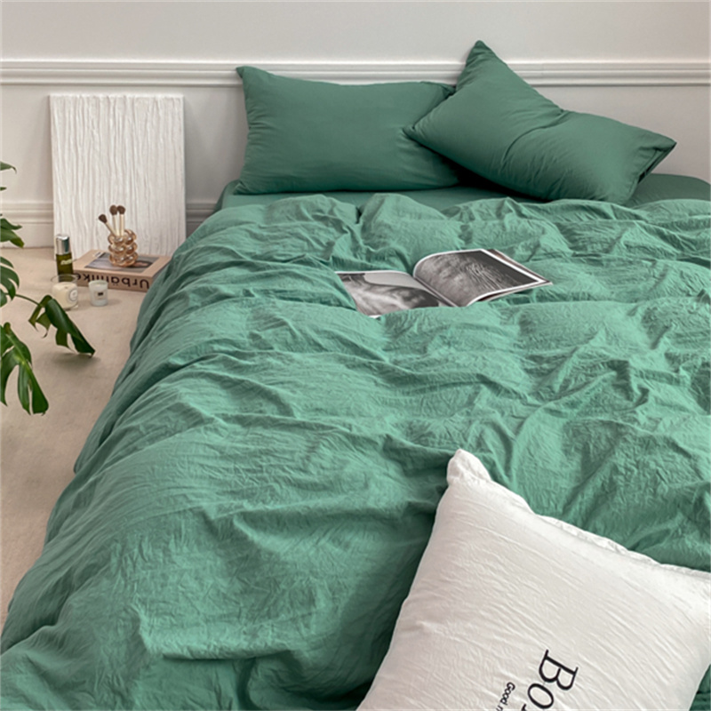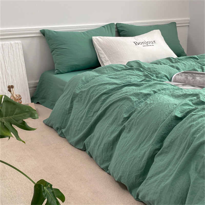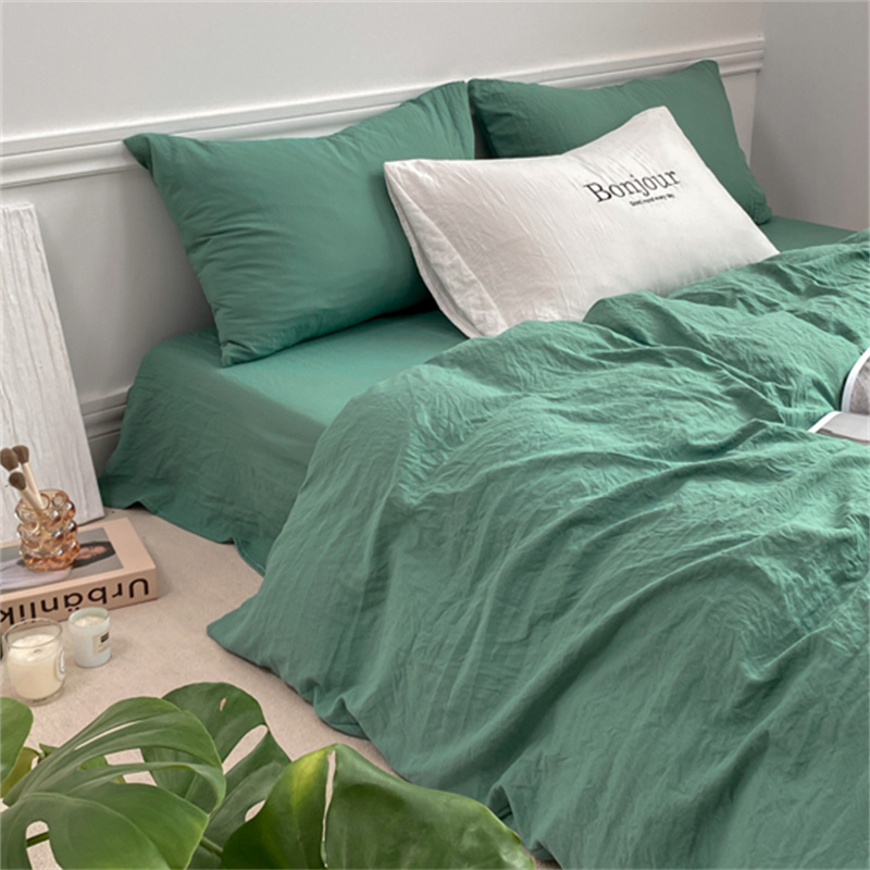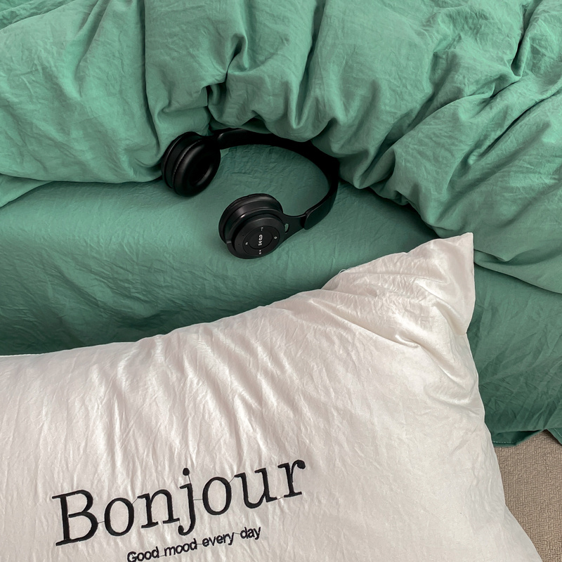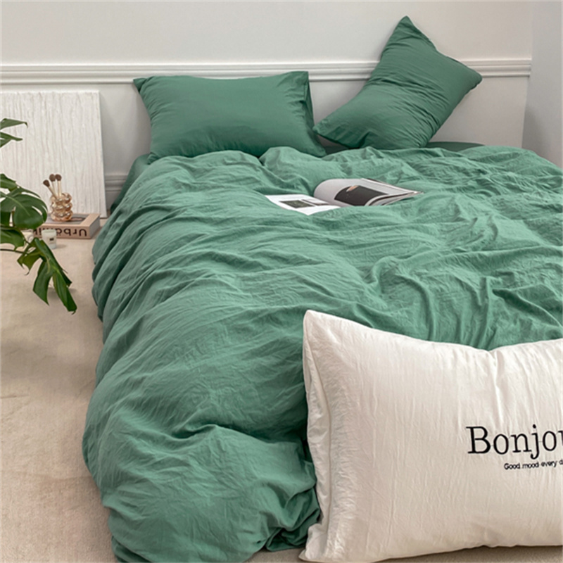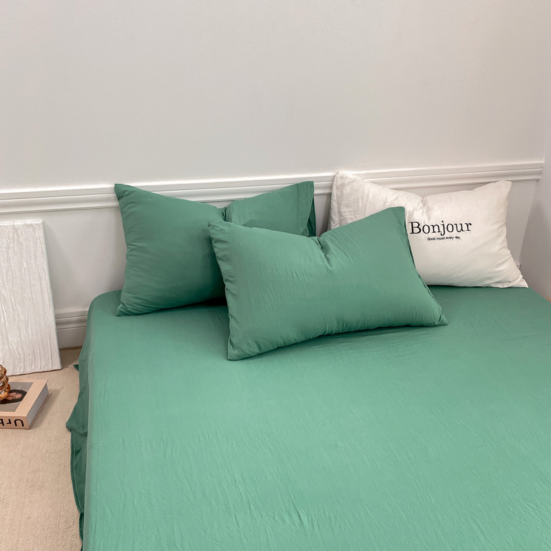 雨帆家纺 2023新款ins风超柔水洗棉四件套 ins湖水绿